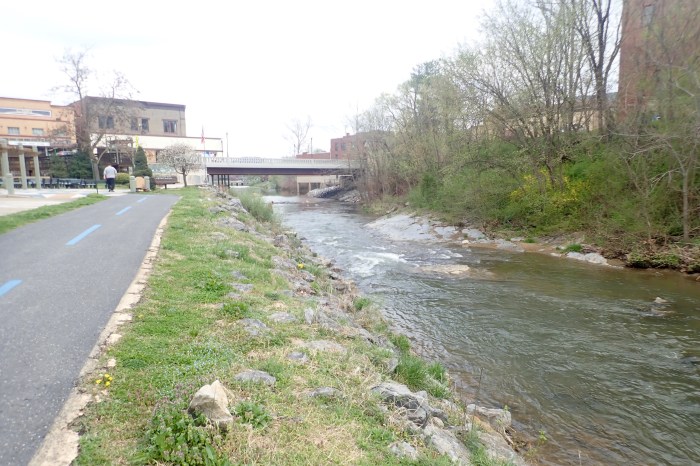 Where the Chickahominy River enters the James River, there’s a bridge … with a steep climb … we turned around at about MM 7.