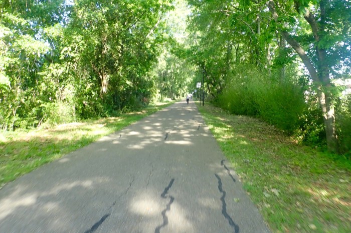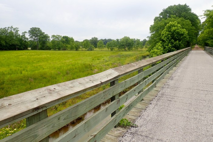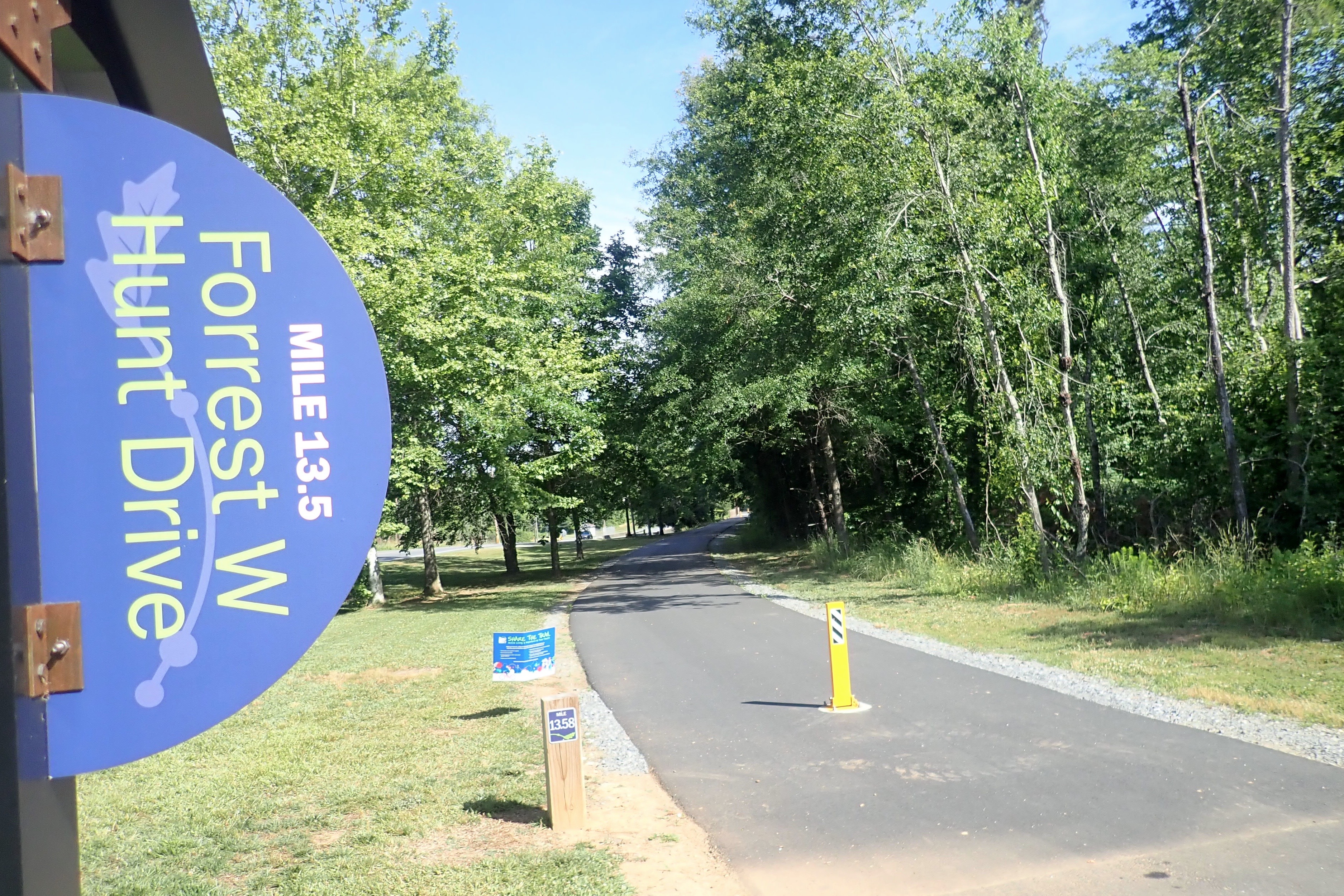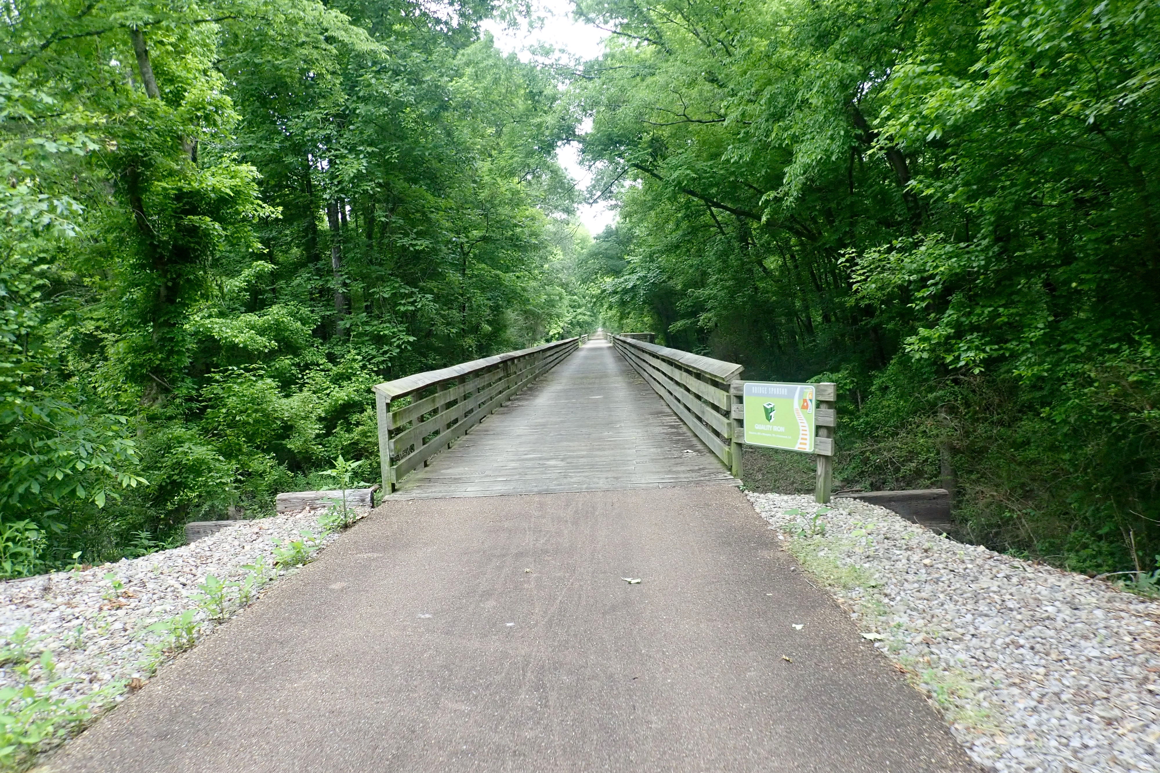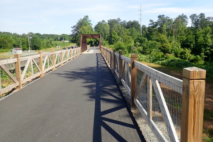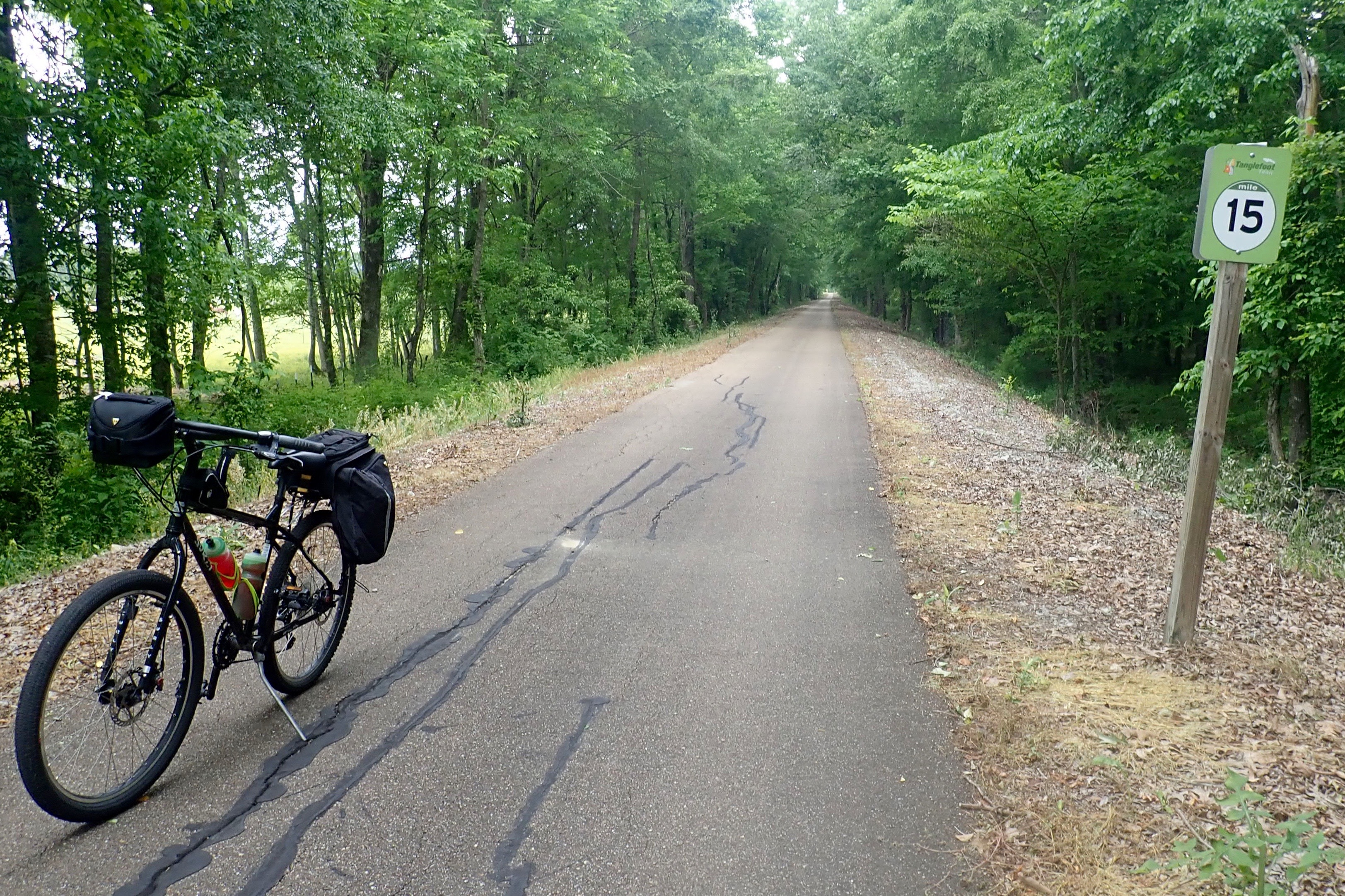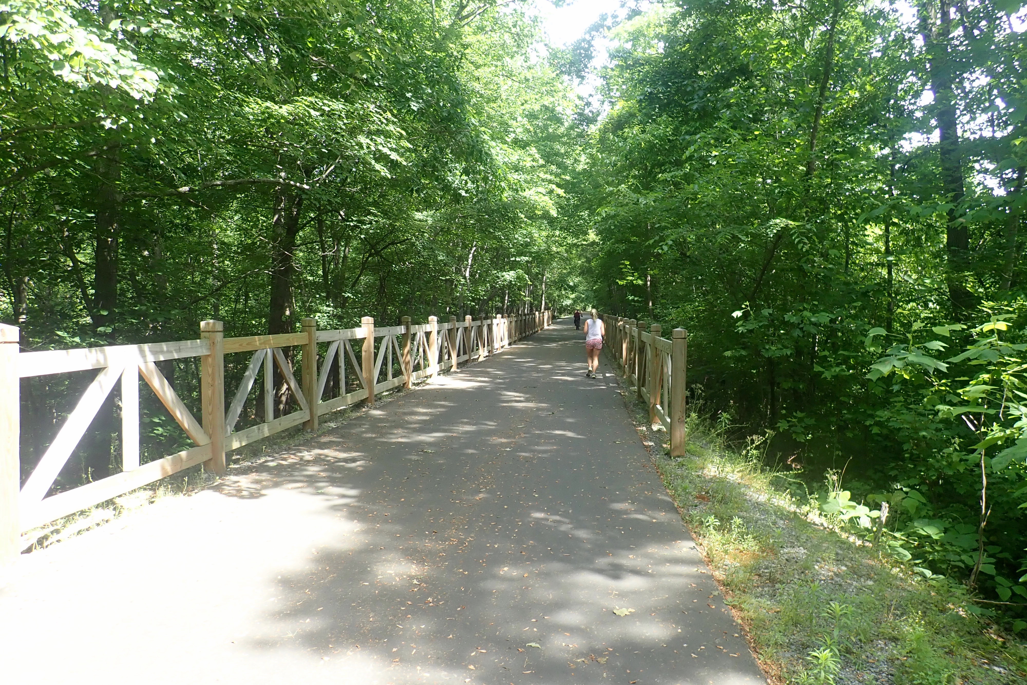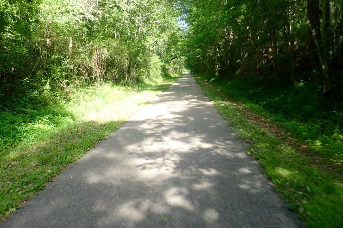 27 miles. Great trail, flawless asphalt and 12ft wide. Road crossings sometimes required extra attention and caution. Fantastic ride.