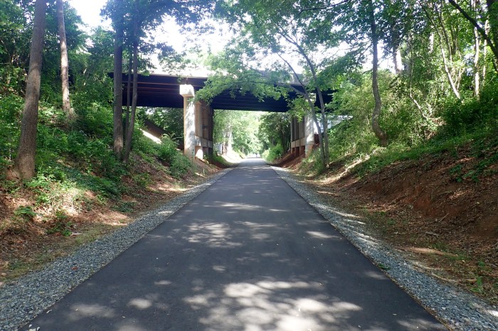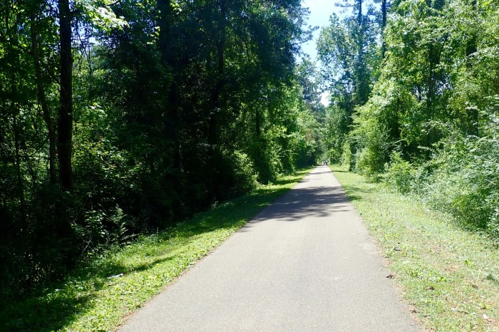 A perfect day for a bike ride – great weather for sure – so we started mid-morning at a trailhead parking lot in front of a local school entrance.