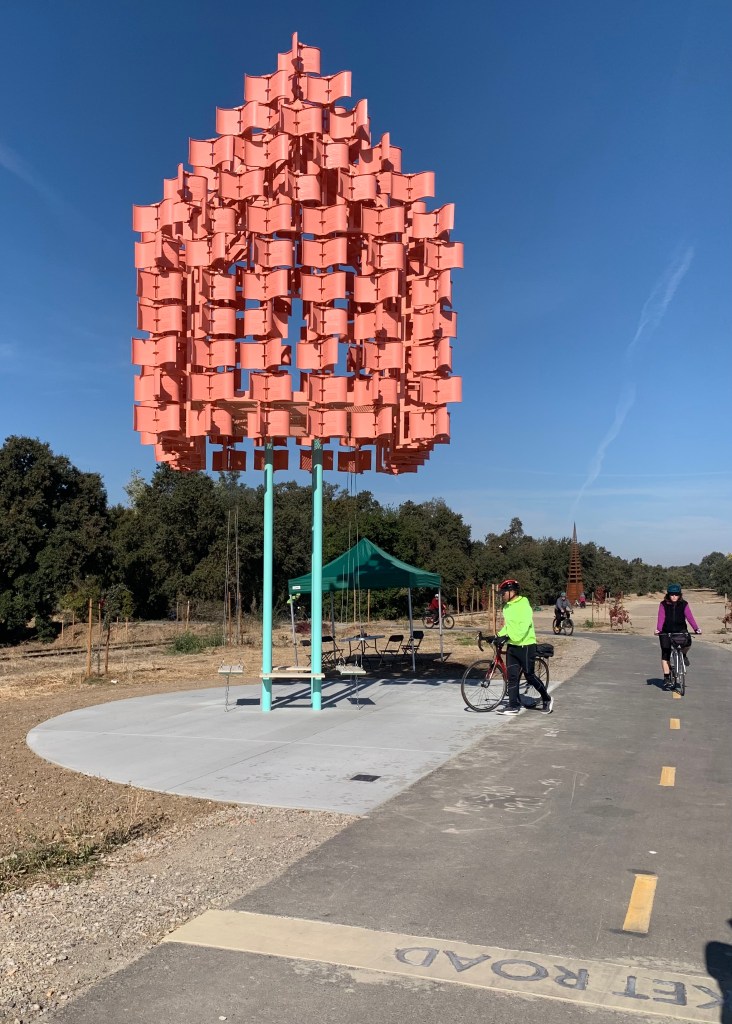 This morning the City of Sacramento encouraged people to walk, ride and roll along the Del Rio Trail to see the recent public art installations and visit with some of the artists. Twelve of us met at the Gateway Connector Bridge over I-80.