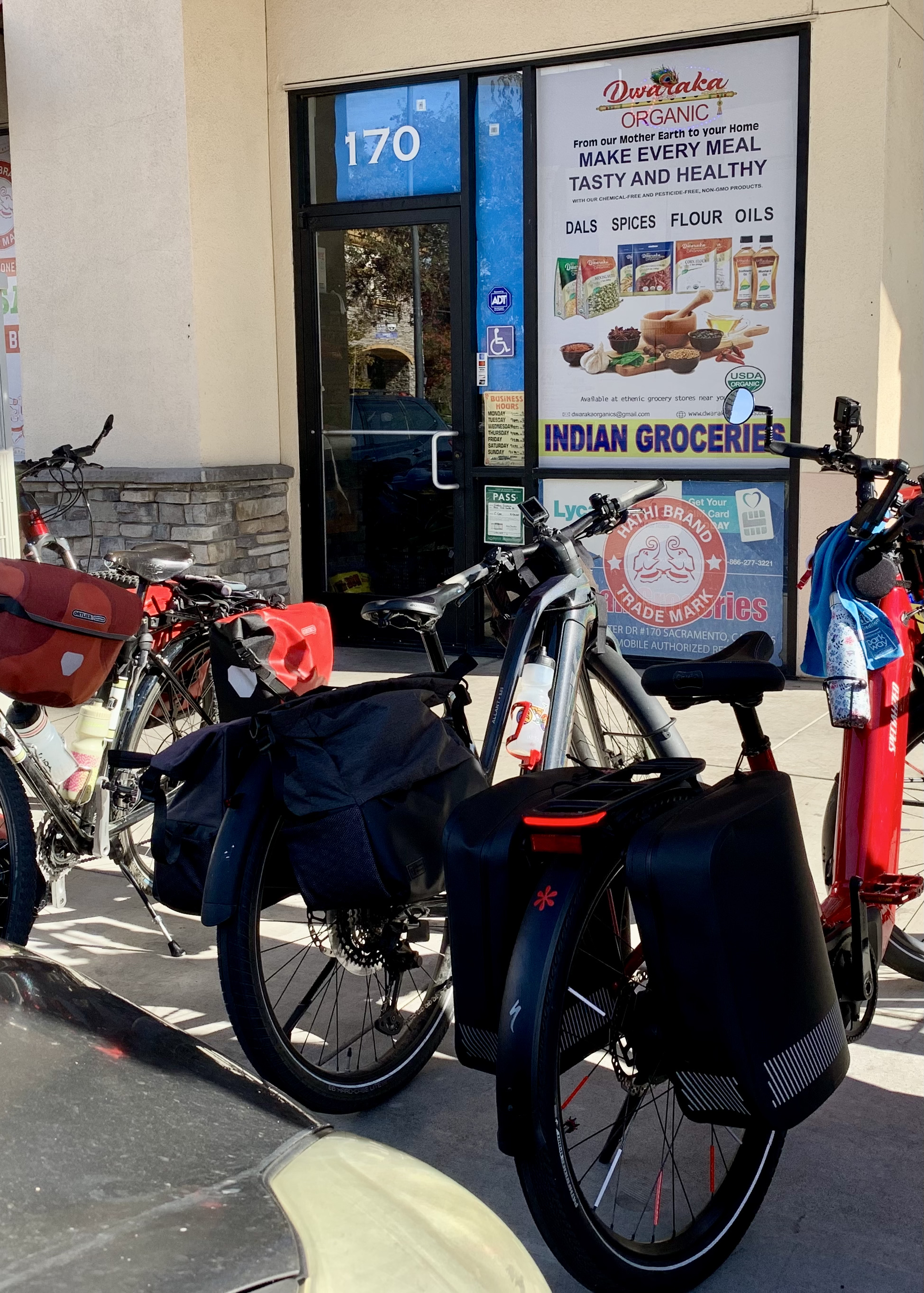I was happy to stay with the bikes while everyone else did the shopping. All our bikes were about to be loaded to the max with Lorge carrying the most – he bicycle tours and has large panniers on the rear and smaller panniers on the front plus his handlebar bag.