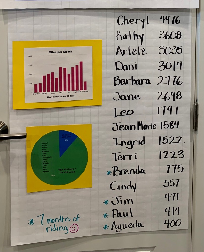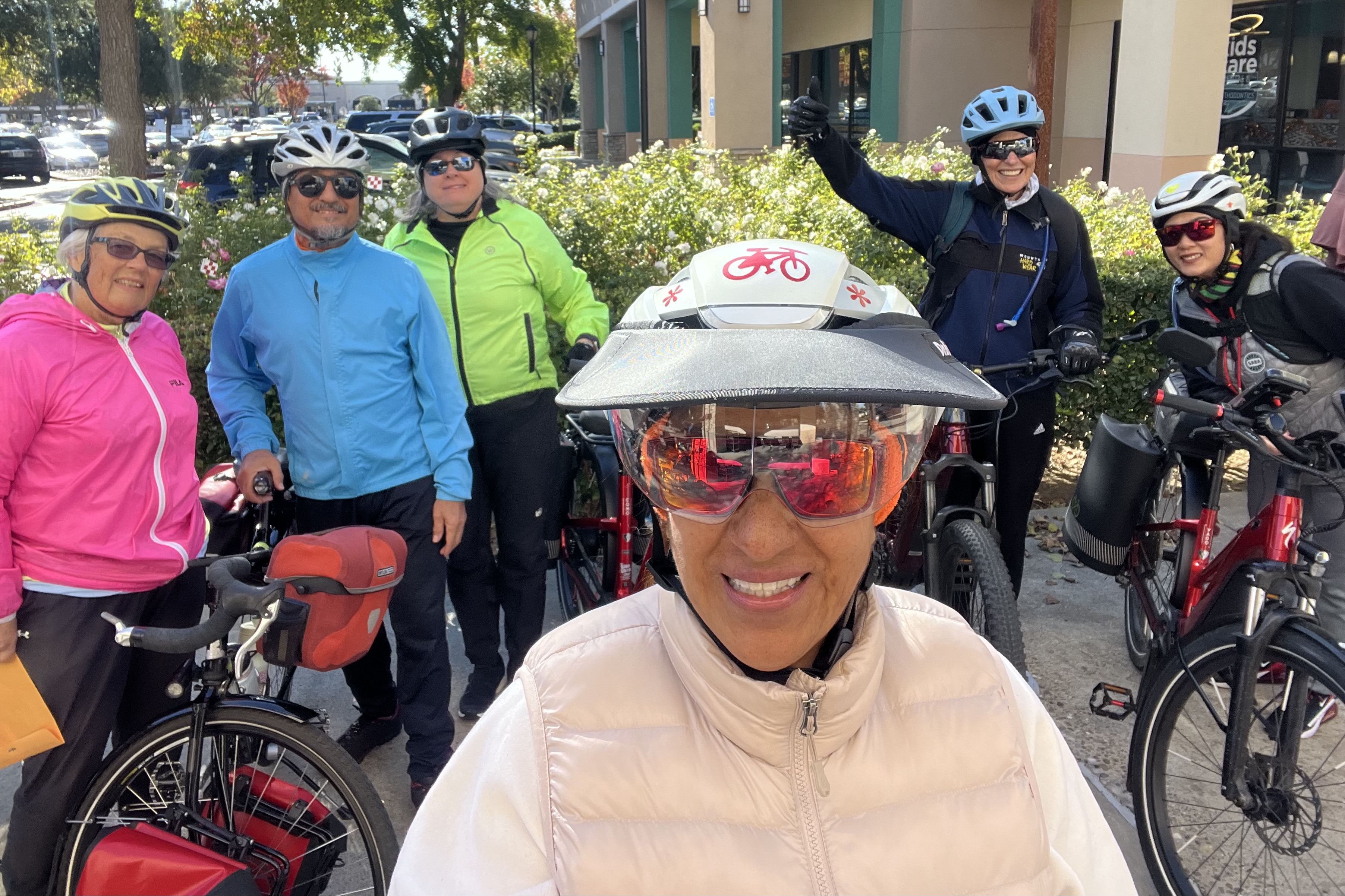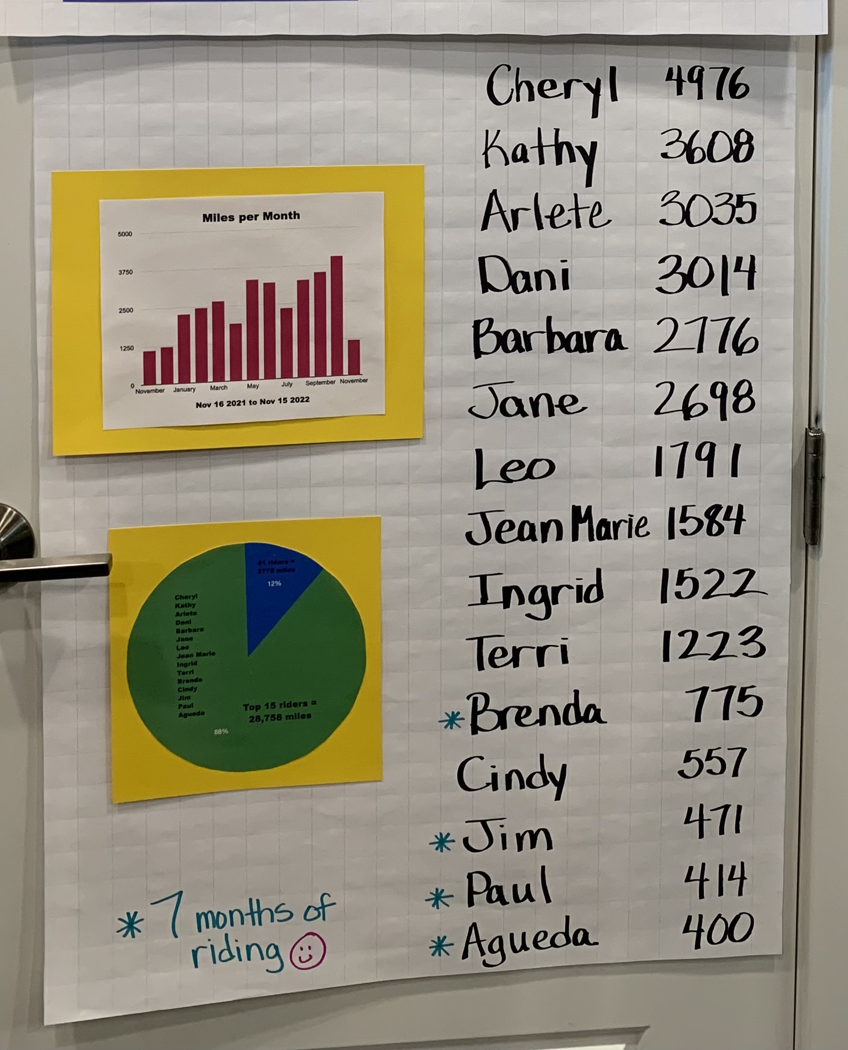On the way back with just 4.5 miles to go, one of our riders had a flat tire. Sheila and I stayed with the rider while Leo rode back to his parked vehicle, then drove to pick up the stranded rider and her bike.