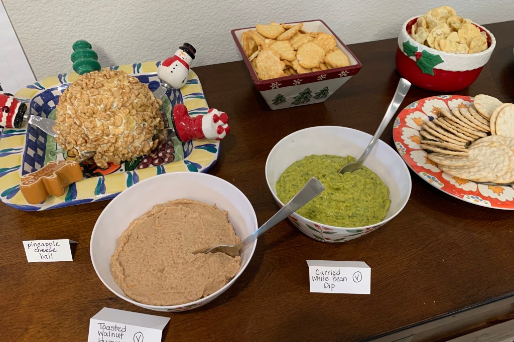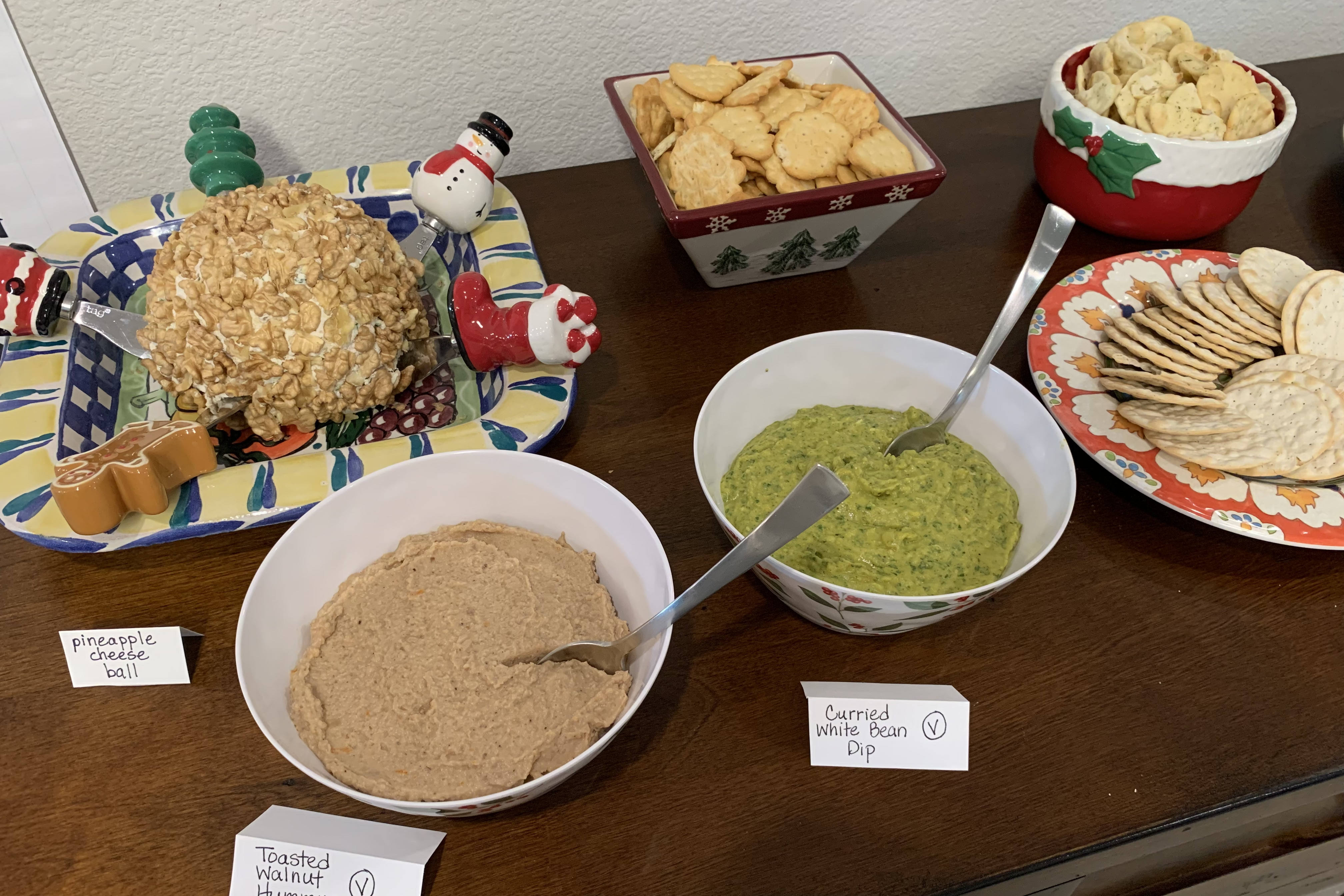 The savories: pineapple cheese ball, toasted walnut hummus, curried white bean dip,