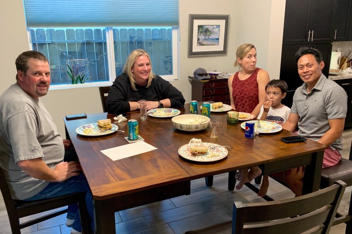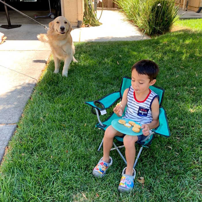 Carson really likes the cream cheese & crackers Sophia makes for him.