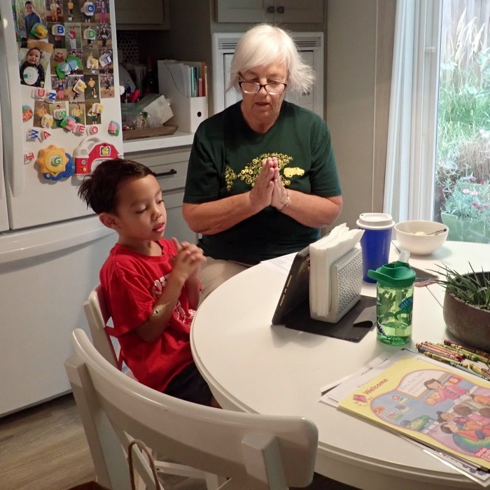 Sophia, Avery and Carson are all in school at home. Sophia does great working in her room. Avery has a desk in the office and wears headphones. Carson is in TK and benefits from some guidance. The morning prayer: