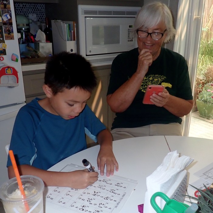 Practicing basic multiplication facts, I’m in charge of the stopwatch: