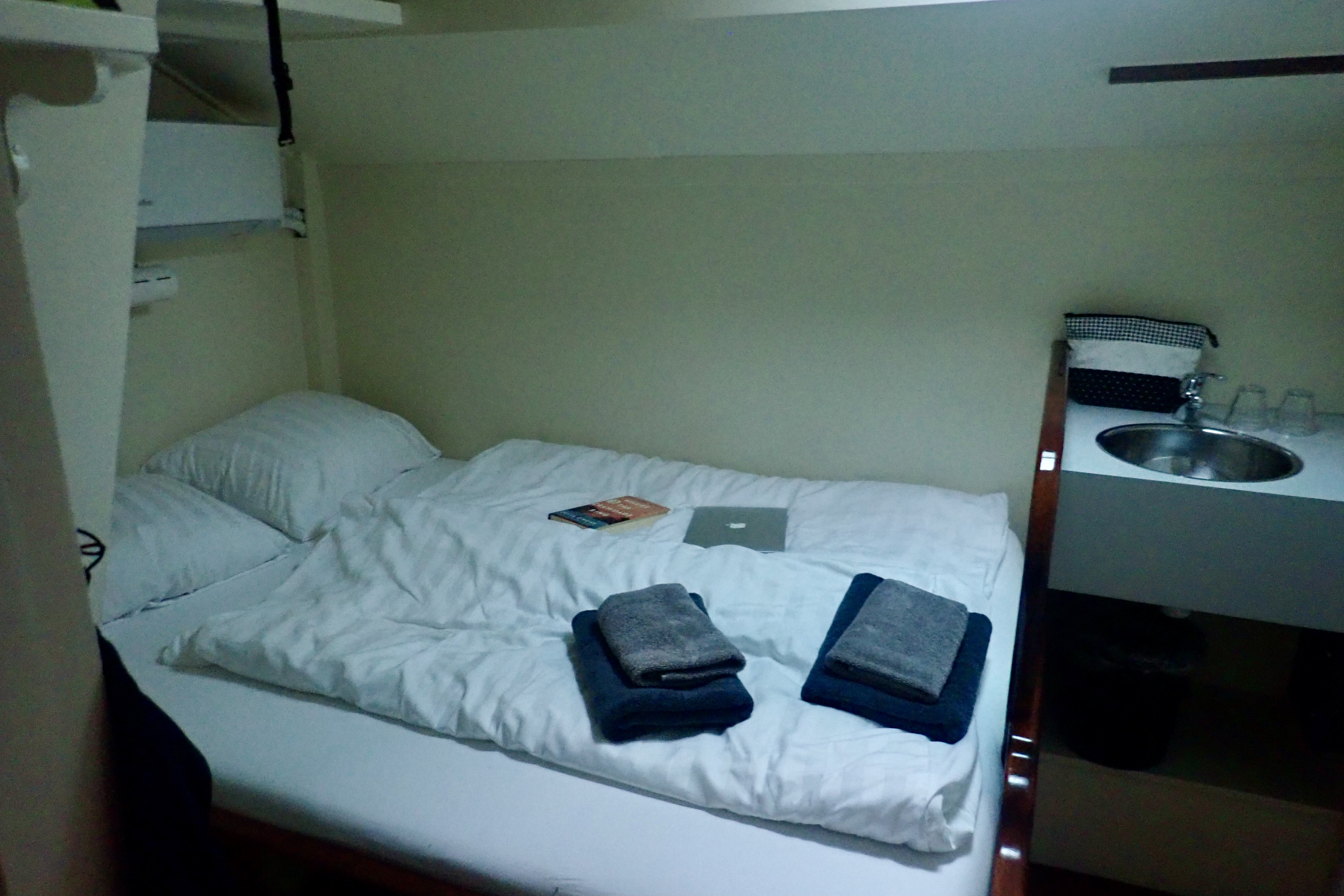 We settled into our cabins. Small but comfortable! I have a double bed, others have twins which criss-cross at the feet, one bed being higher than the other.