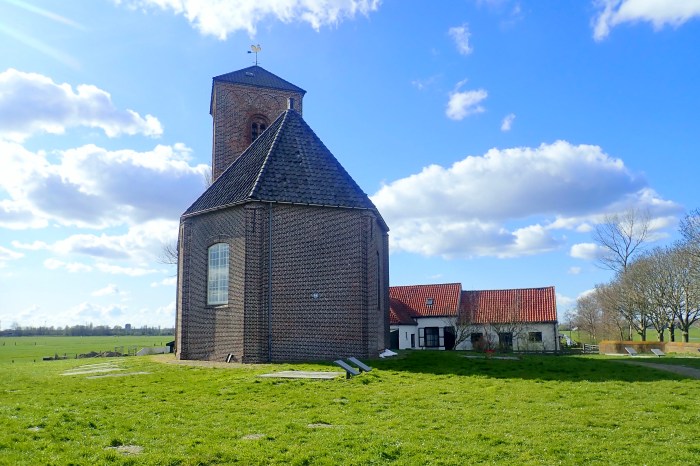 Our first stop was Spaardam – the home of Hans Brinker. There are so many bicycling paths all labeled with arrows and mileages to the next destination. We stopped at a church in the country