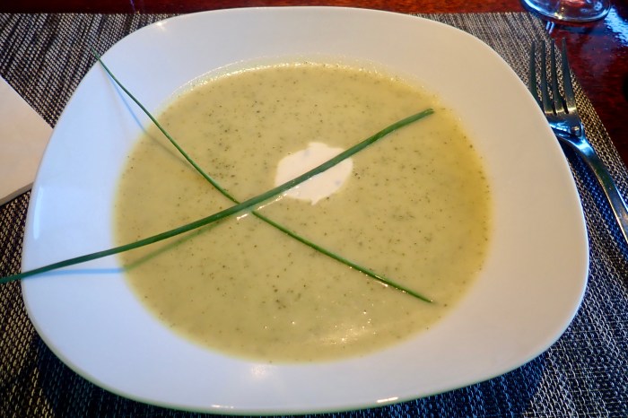 Especially delicious, the Creme courgette (cream of zucchini soup):