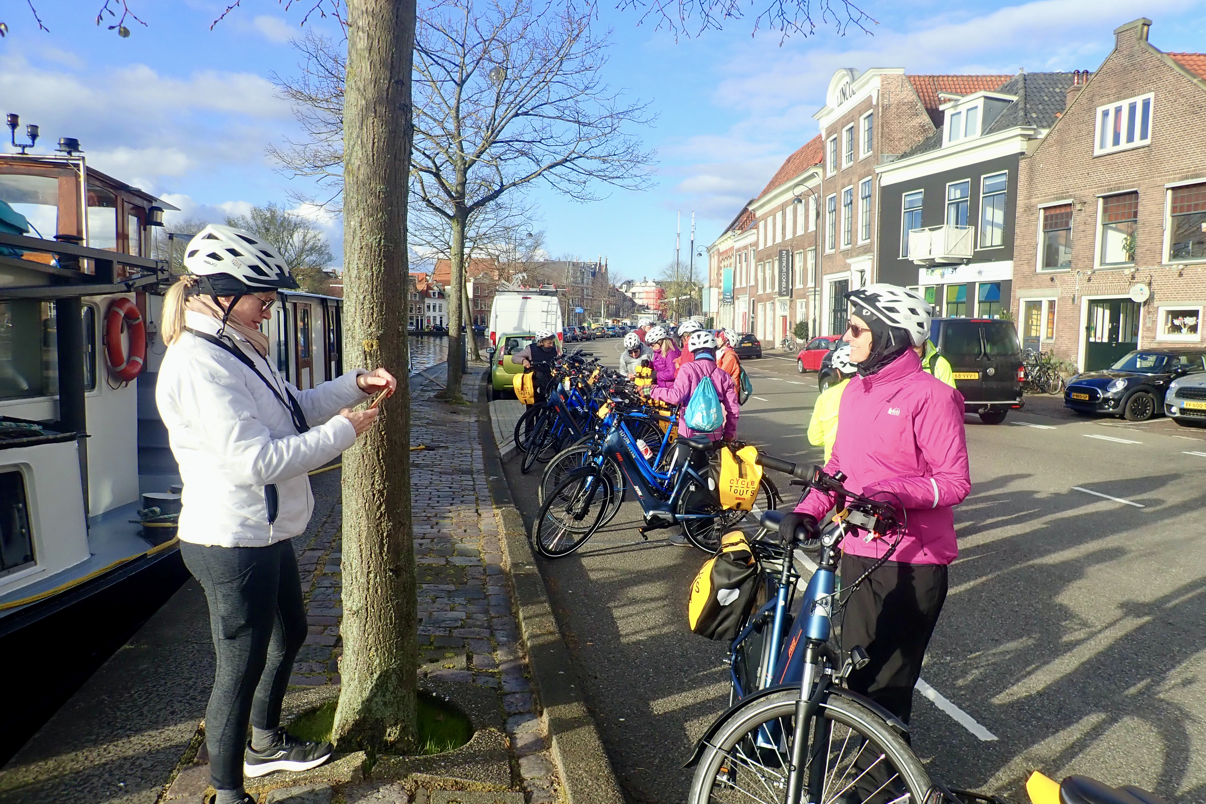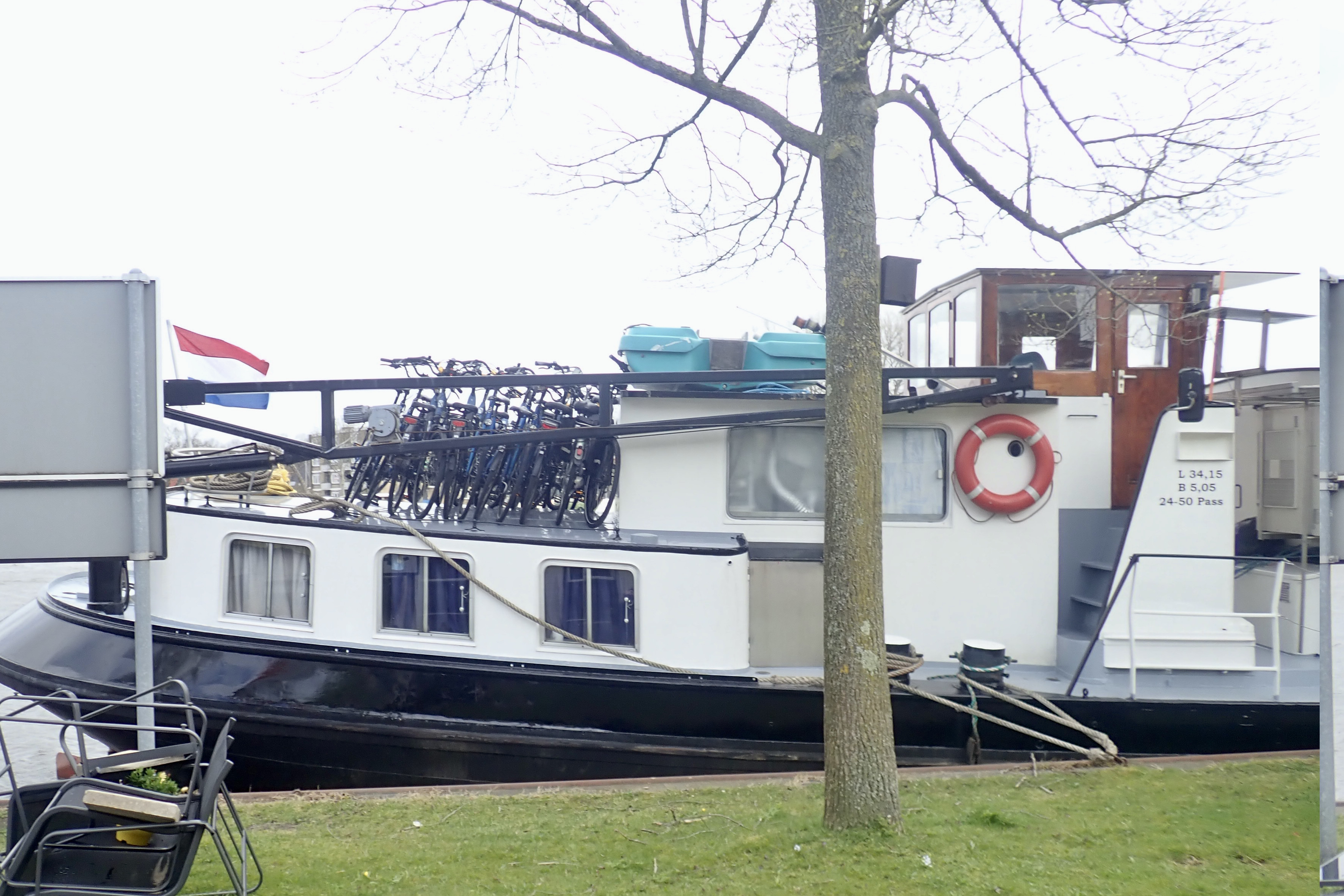 We parked and locked our bikes near the docking area and took a short walk into Leiden to buy a few essentials and wait for the barge to arrive.