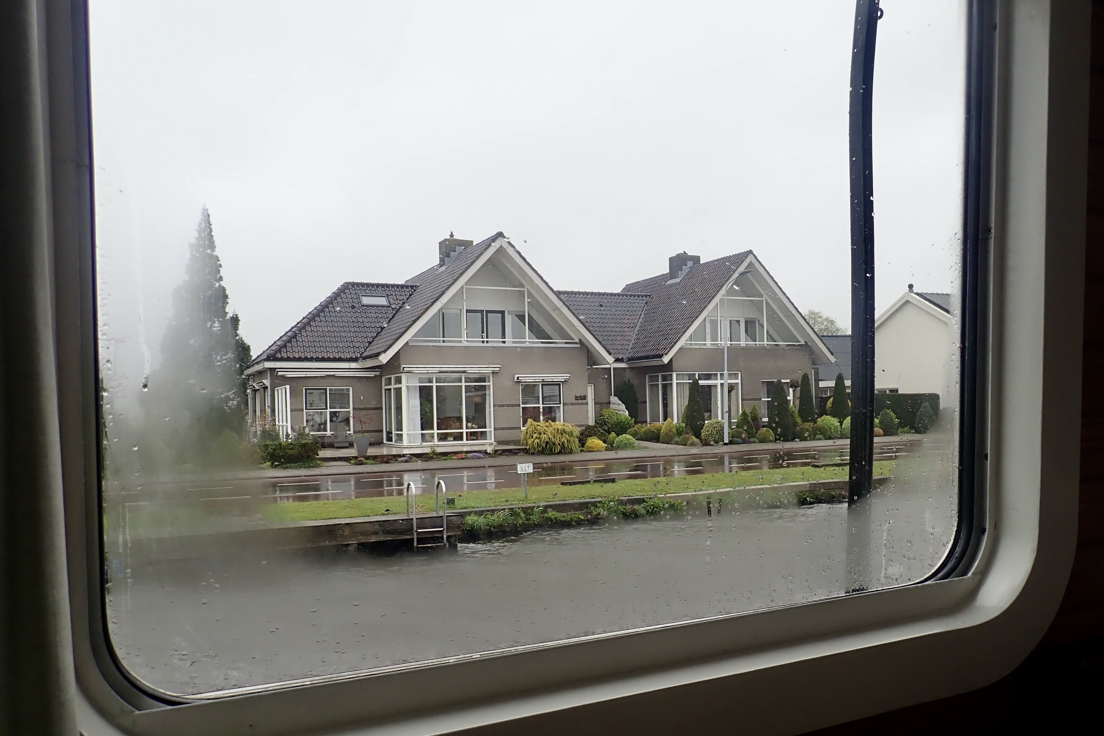 to where Claire de Lune was docked in Wormerveer. Wormer is actually across the canal, “veer” means ferry, so we’re on the other side of the canal accessible by the ferry (but it was actually a bridge). 10 miles of bicycling + 21,000 steps in rainy windy weather. Everyone will sleep well tonight.