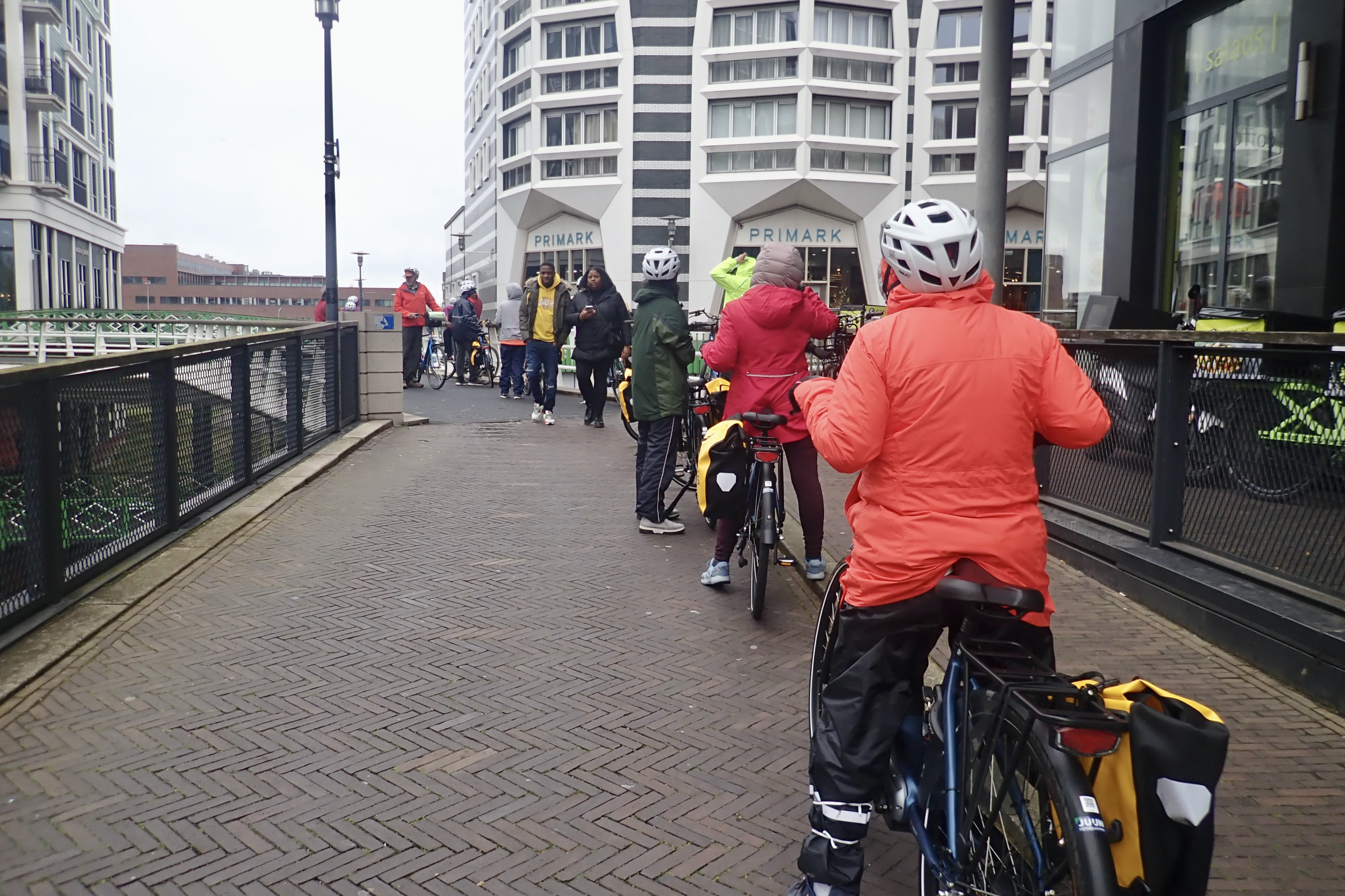 Even though we weren’t in the central part of the city, there were still many challenges to riding on crowded streets with cars, pedestrians, confident Dutch cyclists, and scooters (which are allowed to use the bike lanes!).