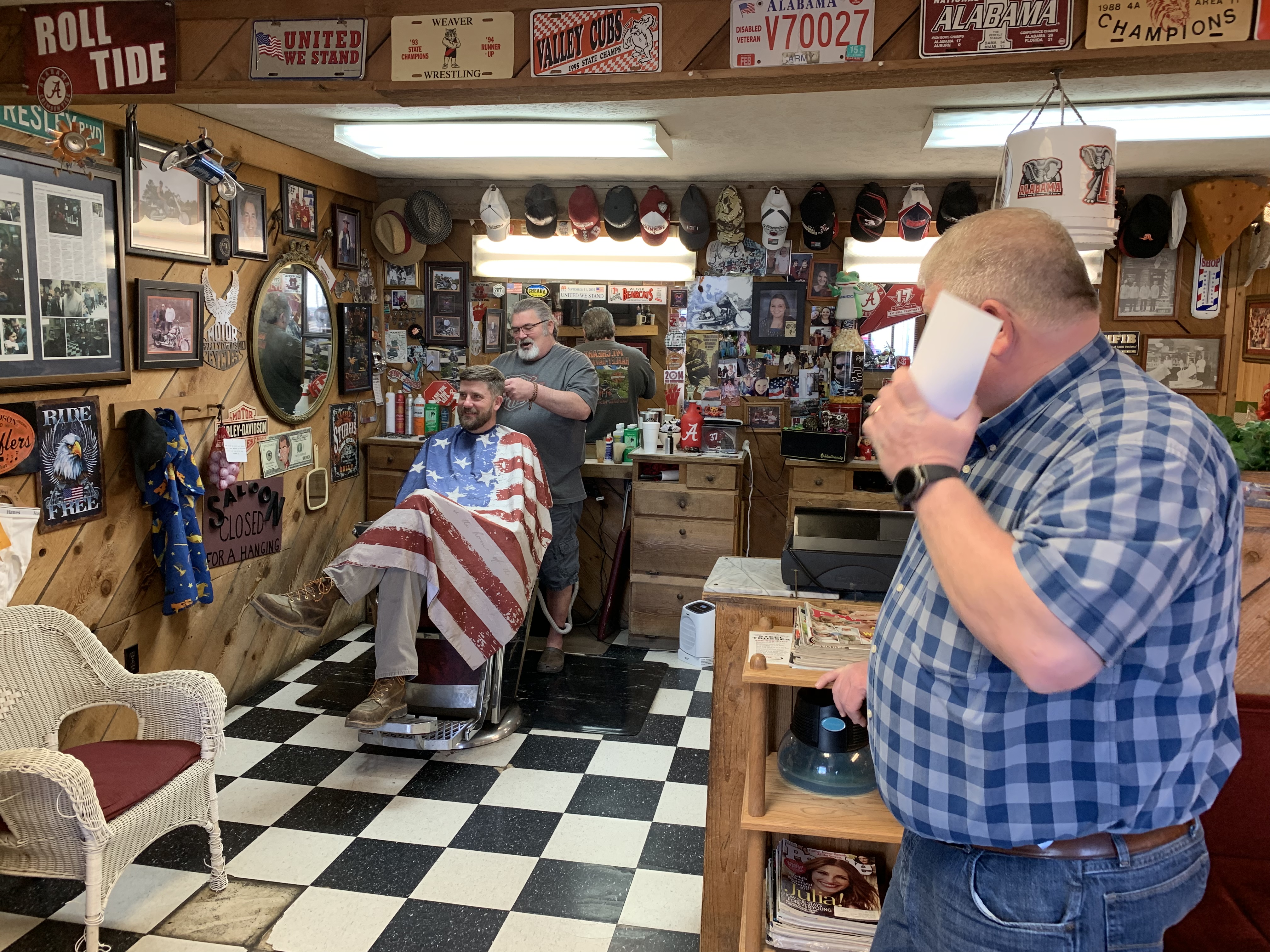 We were dropped off at the barber shop. Billie hoped she could use their bathroom where these guys made us laugh as they joked around with each other.