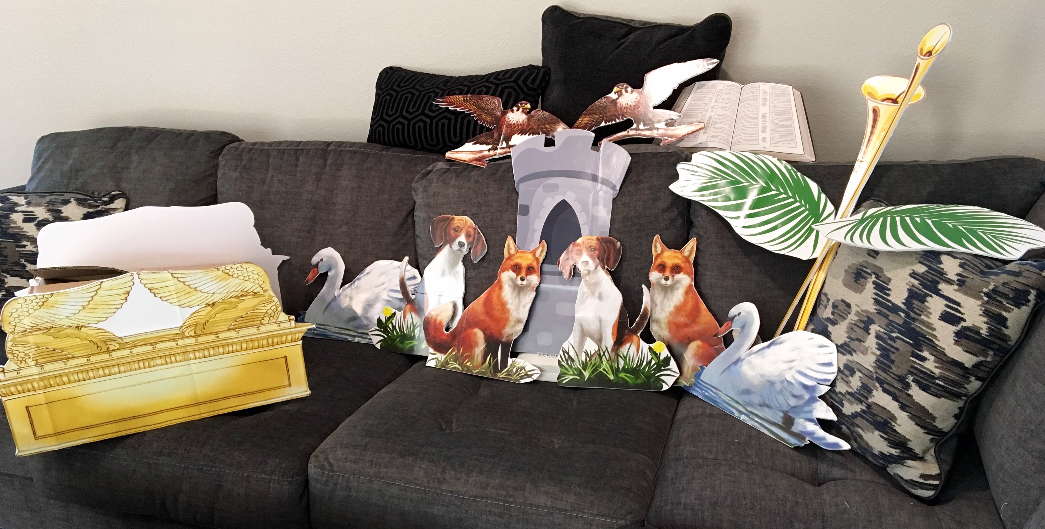 To get ready for Vacation Bible School at the end of July, I cut out lots of pictures, glued them onto foam board, and cut out the shapes again with a utility knife.