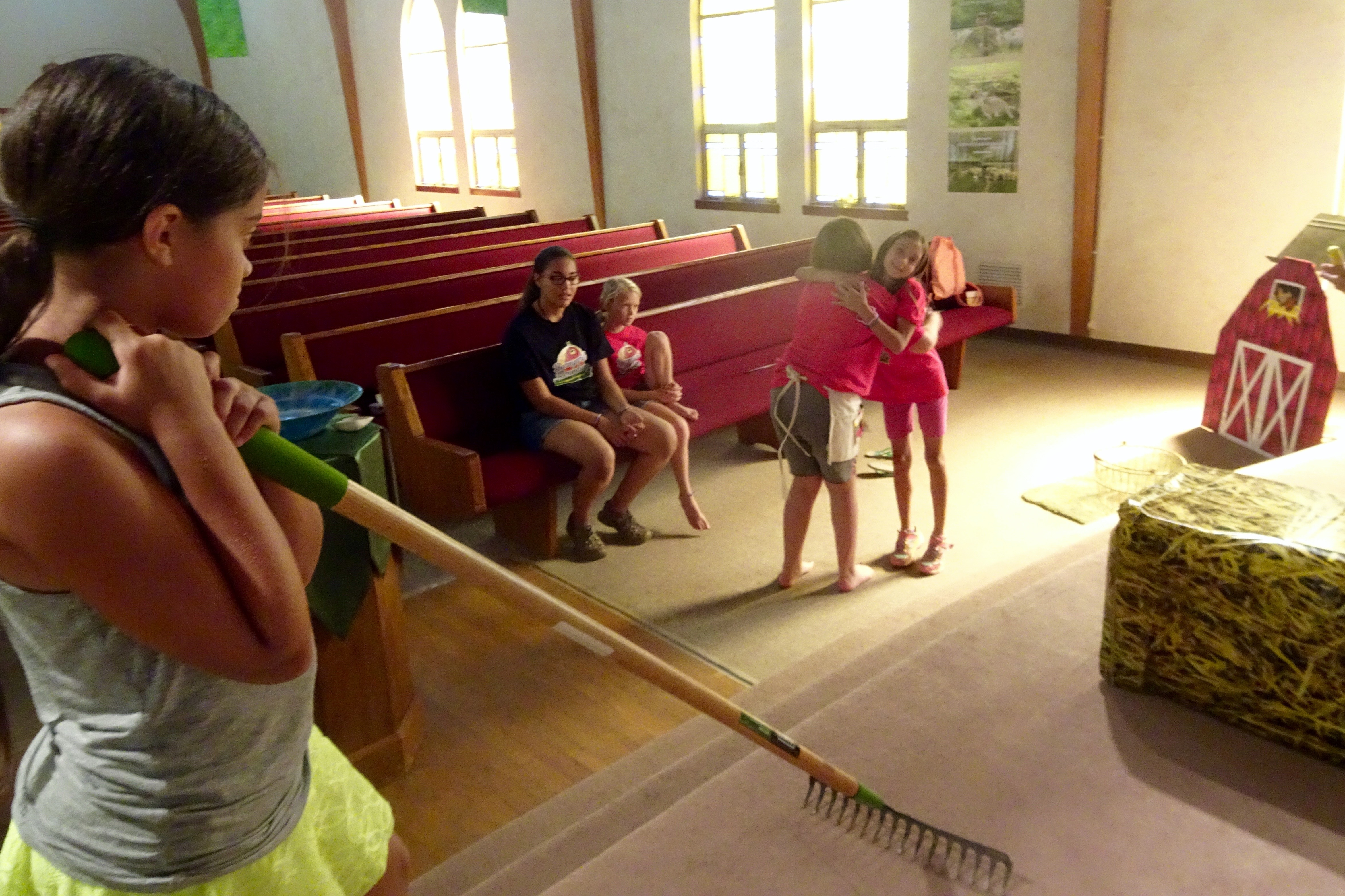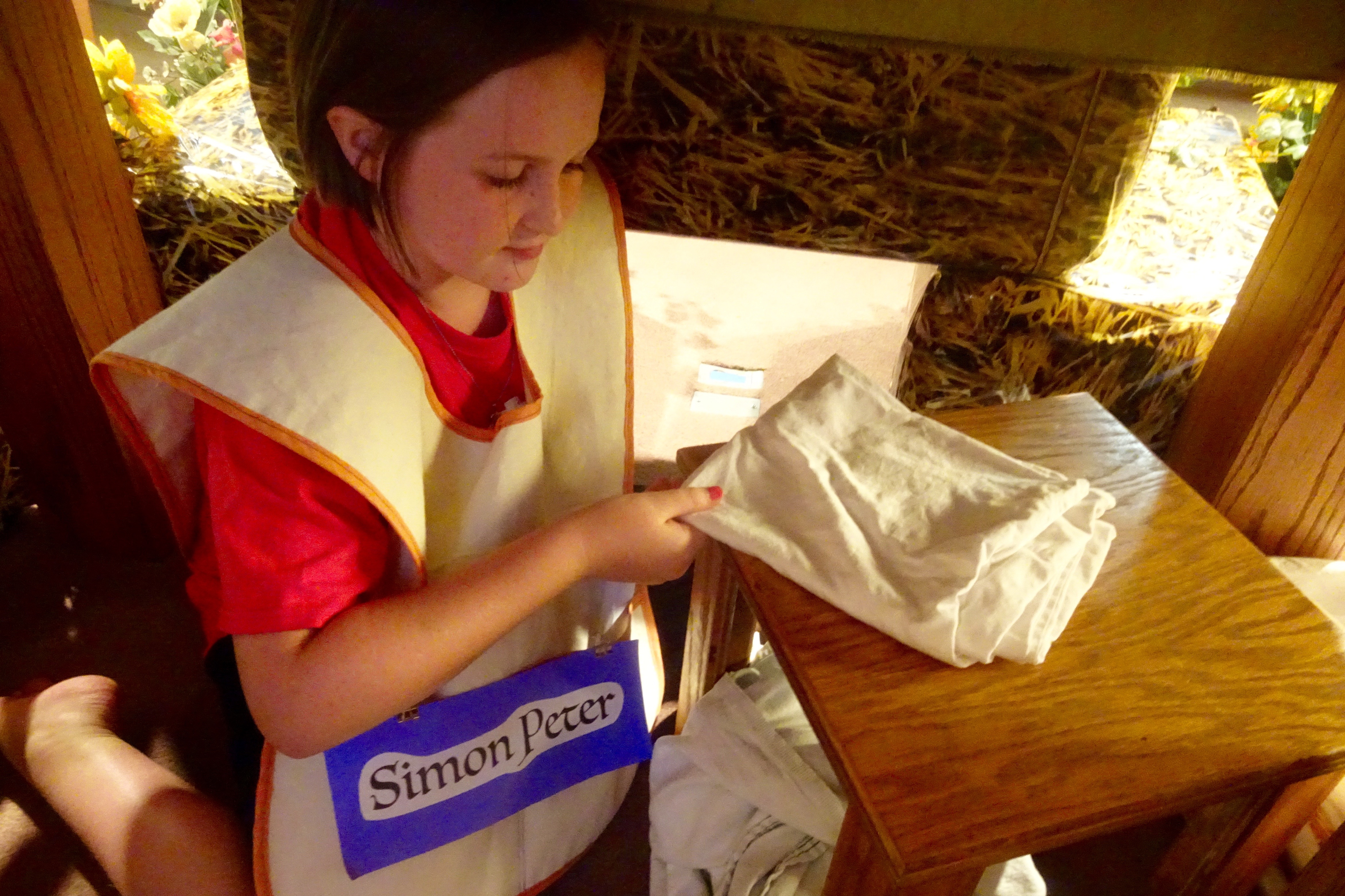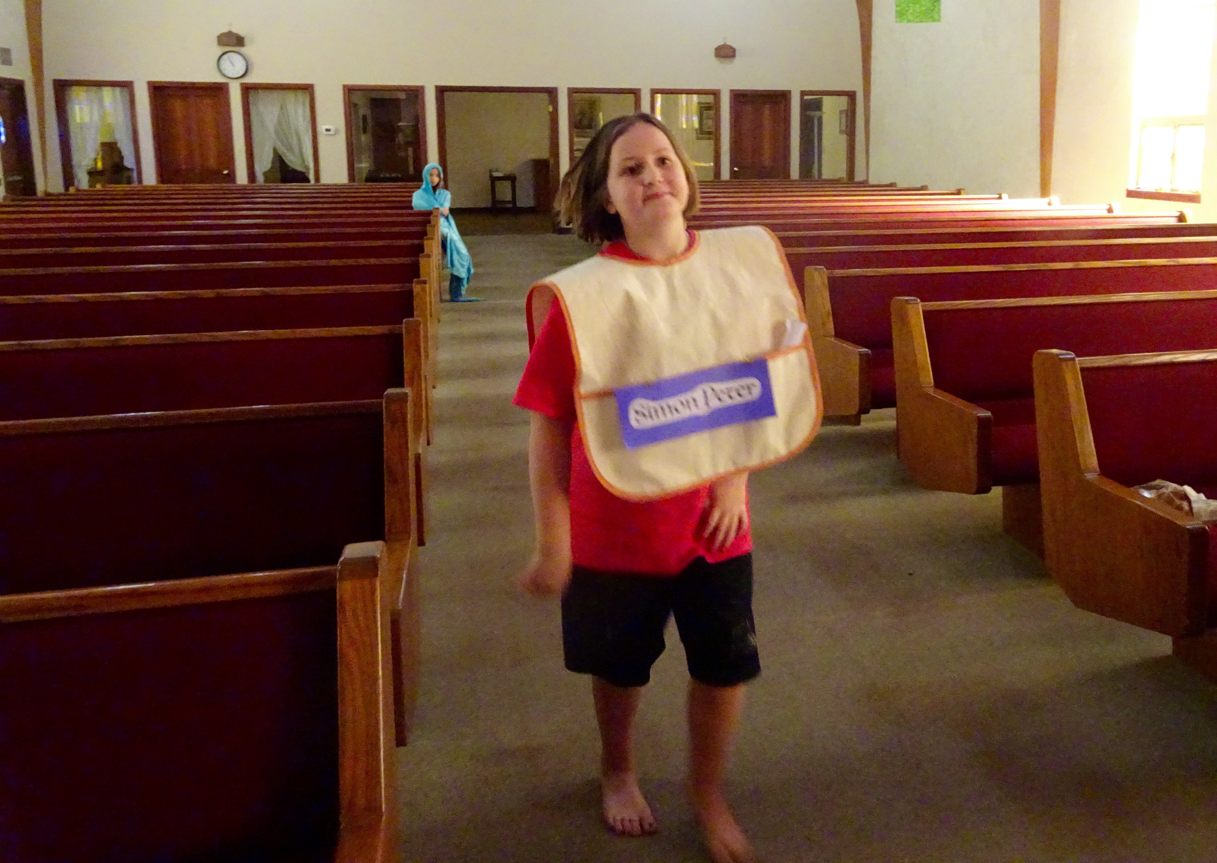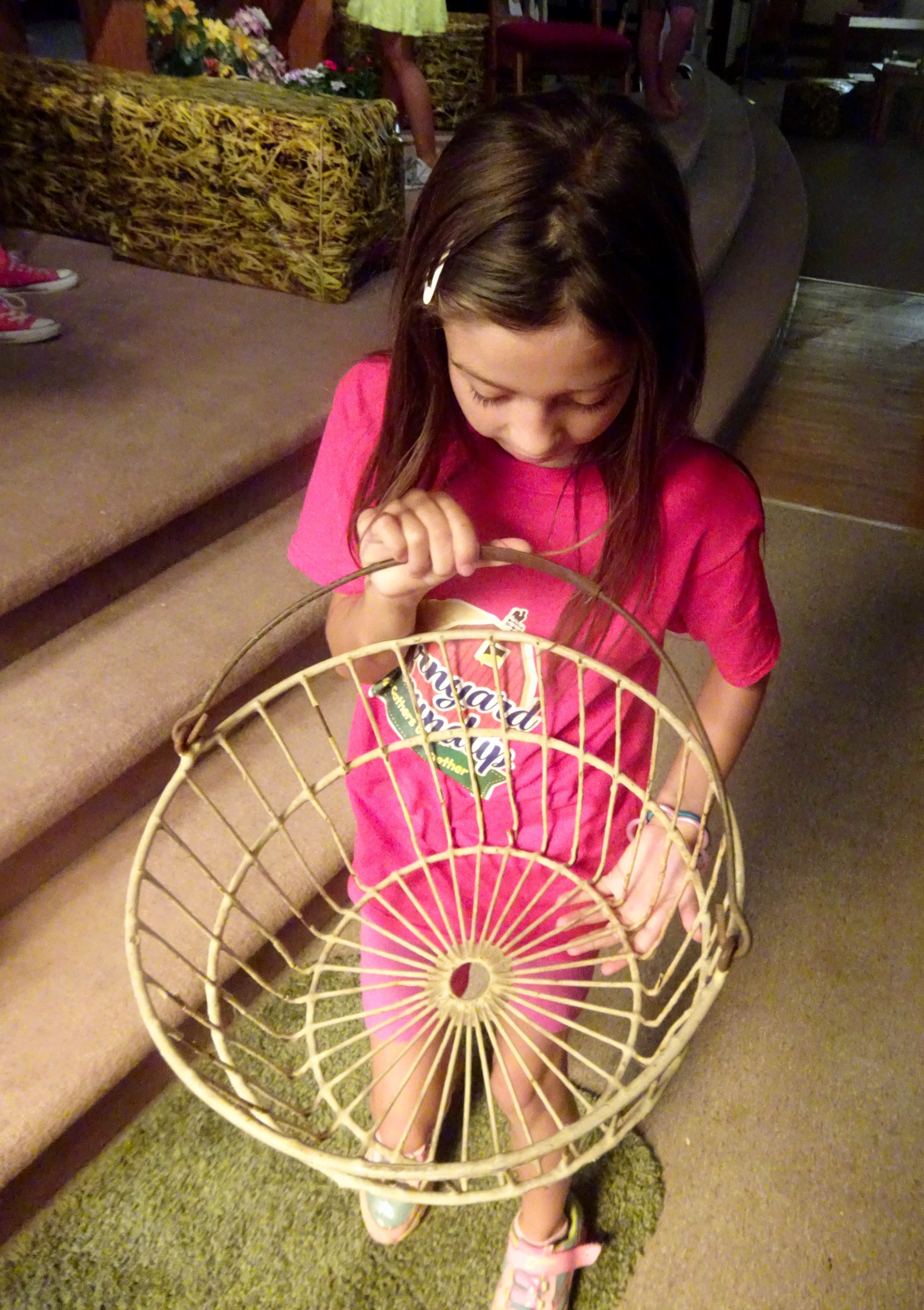 Yesterday’s story was Jesus Tells about a Sower. We sowed seeds in a path where people walked but birds ate the seed, rocky ground (rocks laying on a dark brown towel), ground that also grew vines, and finally good soil. Managing all the birds, seeds, vines, and plants must have been overwhelming – I took no pictures.