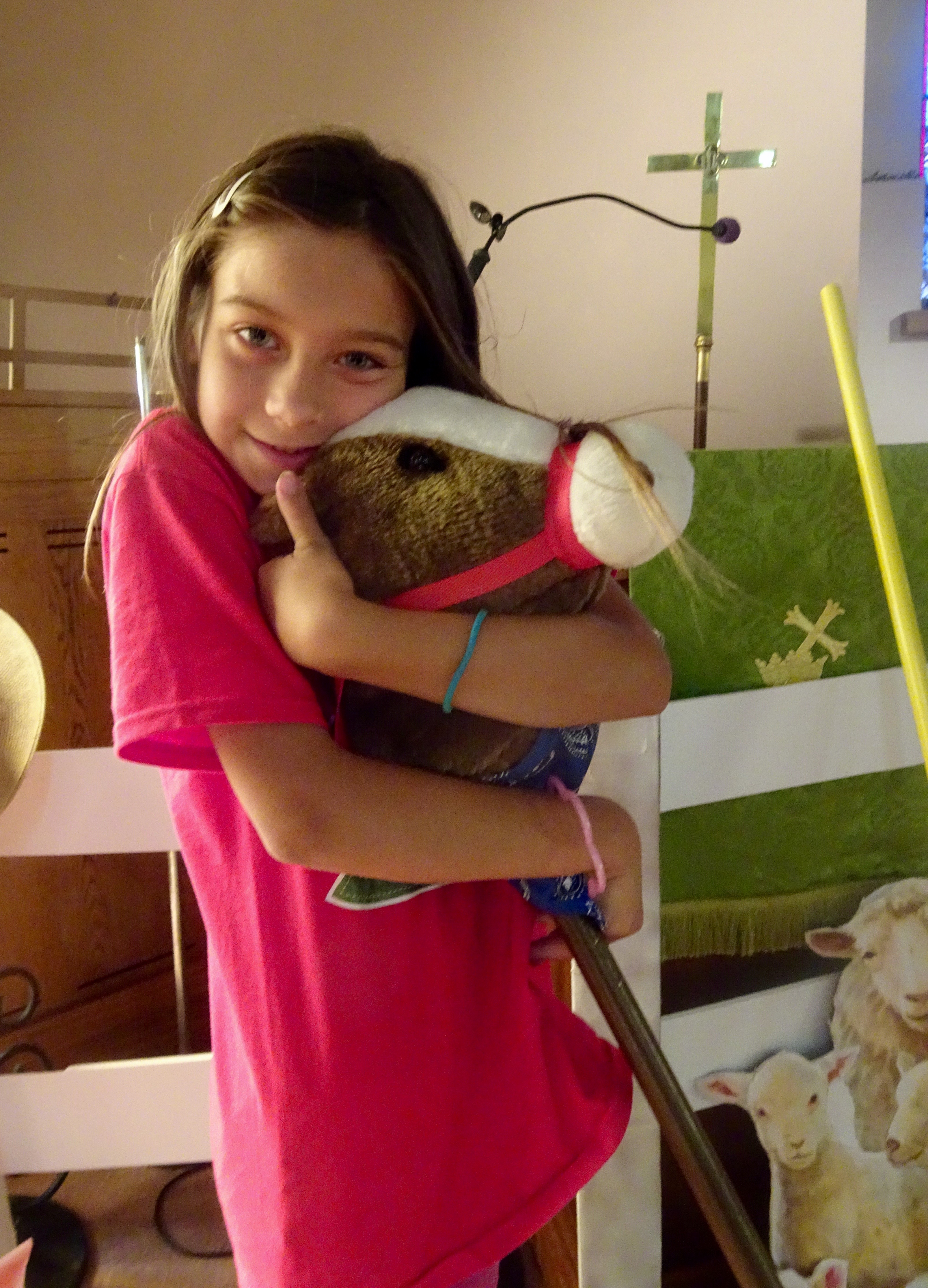 Isabella and the horse became immediate and fast friends. She named him Hot Cocoa and gave him a hug before she left each day.