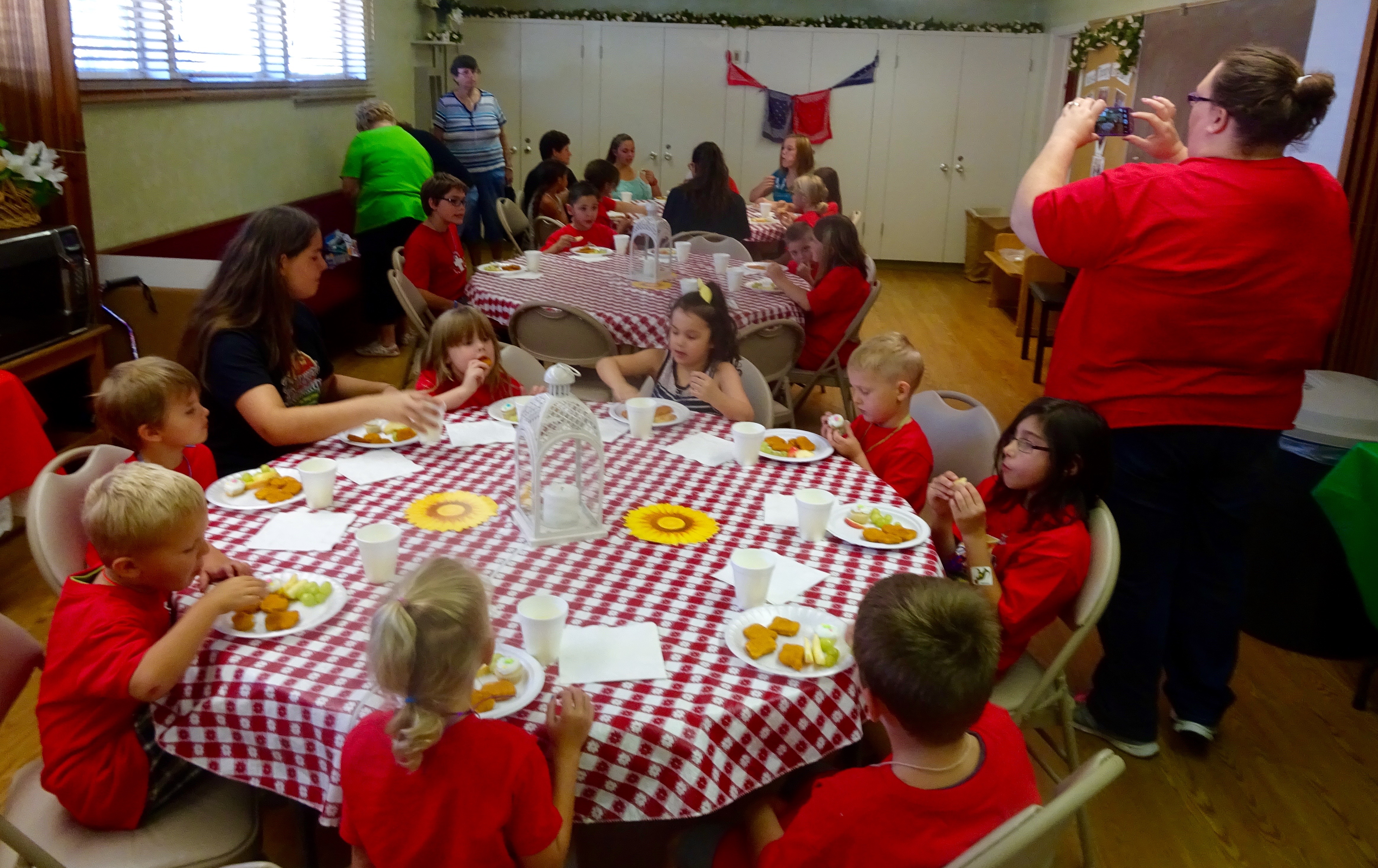 Lunch served by the lunch crew. Deena Nickel (at right taking a picture) organized Vacation Bible School this year.