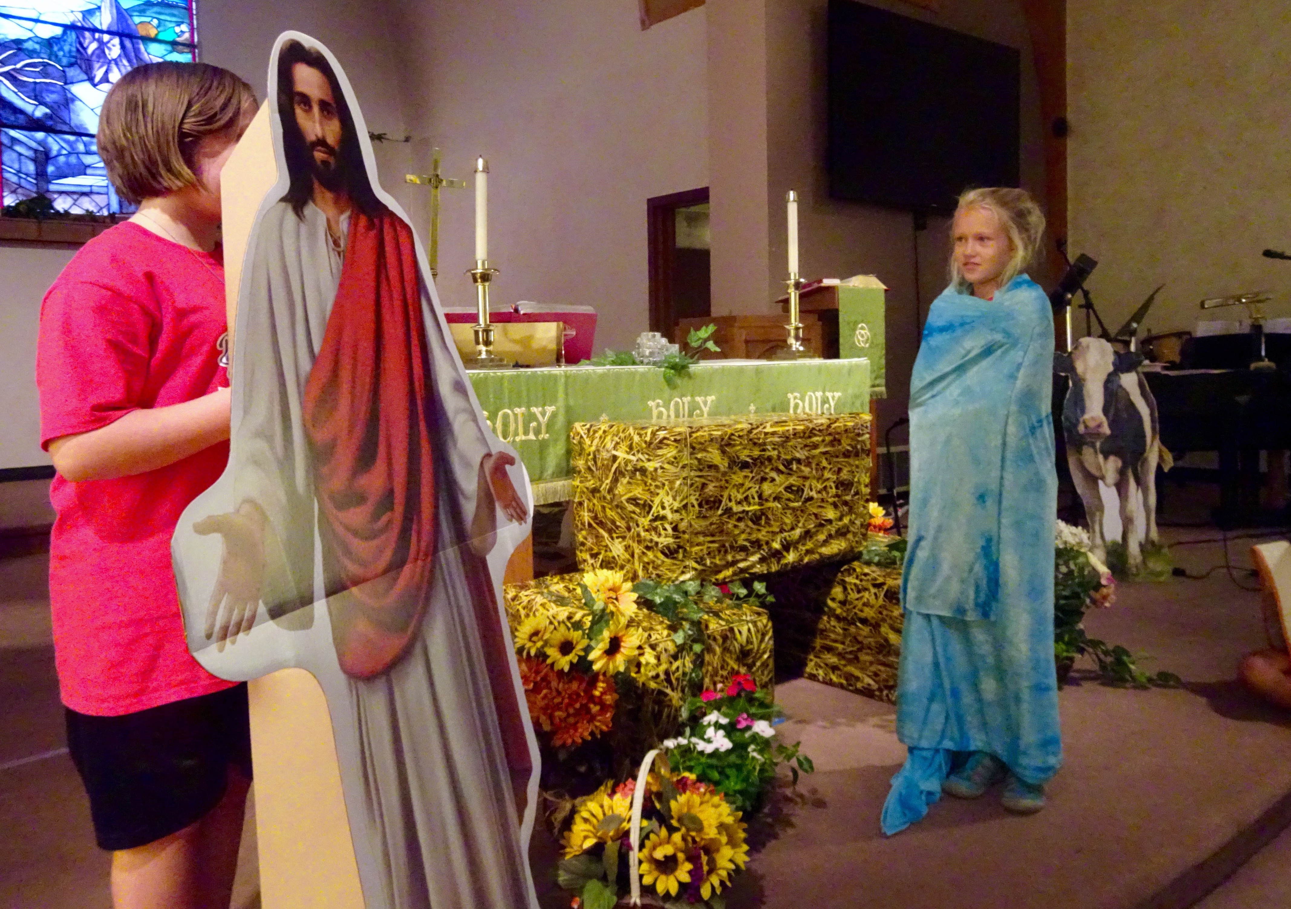 Every Pre-K through 6th grader participated in the story from last Monday, Jesus is the Good Shepherd. We had lots of lambs (and a little chaos) for this performance.