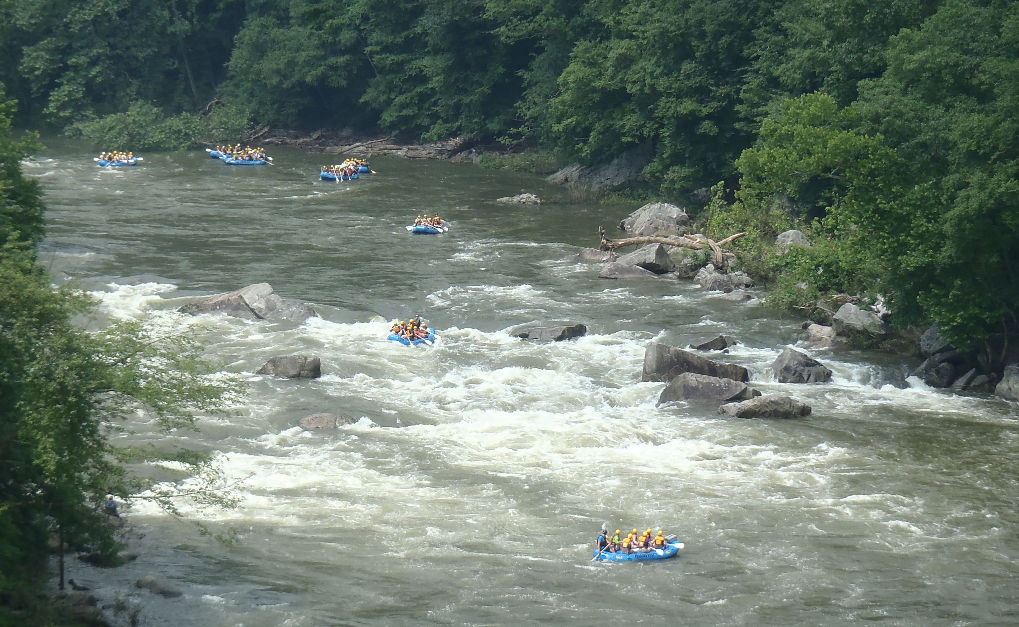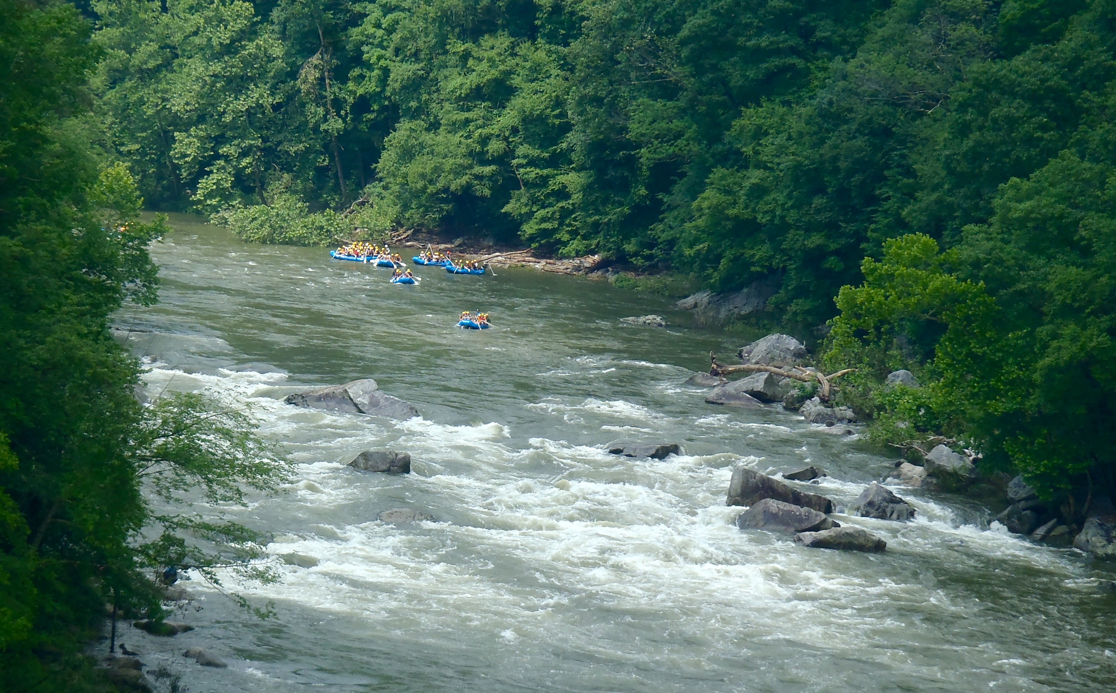 As we crossed the bridge into Ohiopyle, we saw a large group of rafts readying to run the rapids.