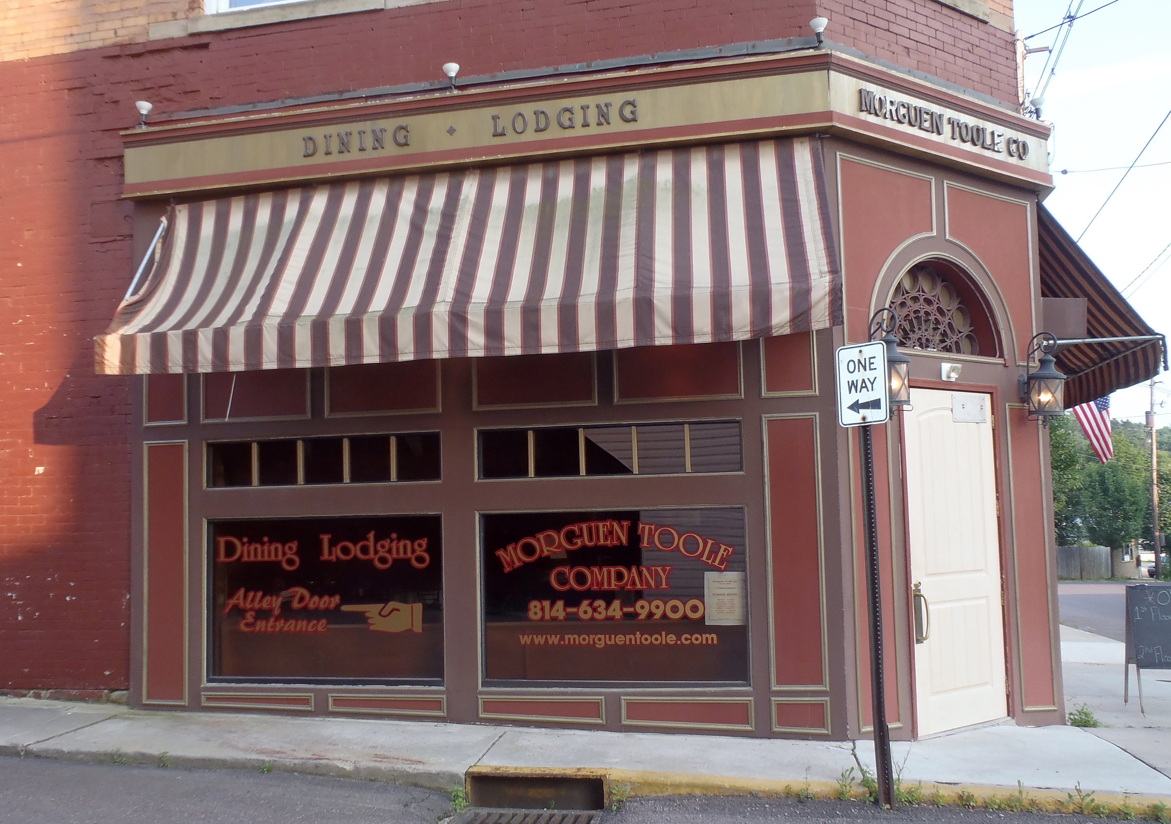 We stayed at the Morguen Toole Company in Meyersdale. While the restaurant is on the second floor, the salad bar is on the first floor and our room was on the third floor. That would be 40 steps to climb several times to get all our stuff into the room. JD was spared multiple trips due to his leg injury. We were in the FOE Tap Room named for a previous use of the building during the Prohibition era. FOE stands for Federal Order of the Eagle (not Evil).