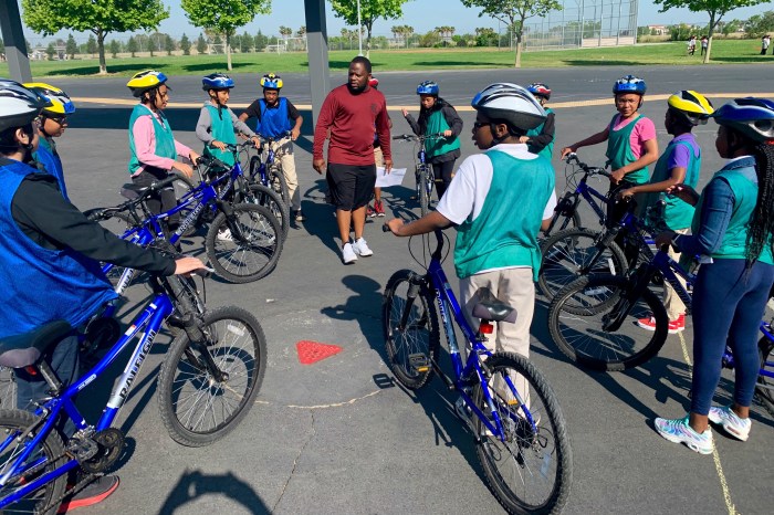Thursday and Friday: blacktop drills plus one hour after school to coach beginning riders. Long day of physical work. Before school we take 40 bicycles out of a shipping container plus set out about 100 cones for the course. At the end of the day the bikes are repacked and we get the kids in the final class to pick up the cones. The one hour after-school coaching sessions were quite rewarding.