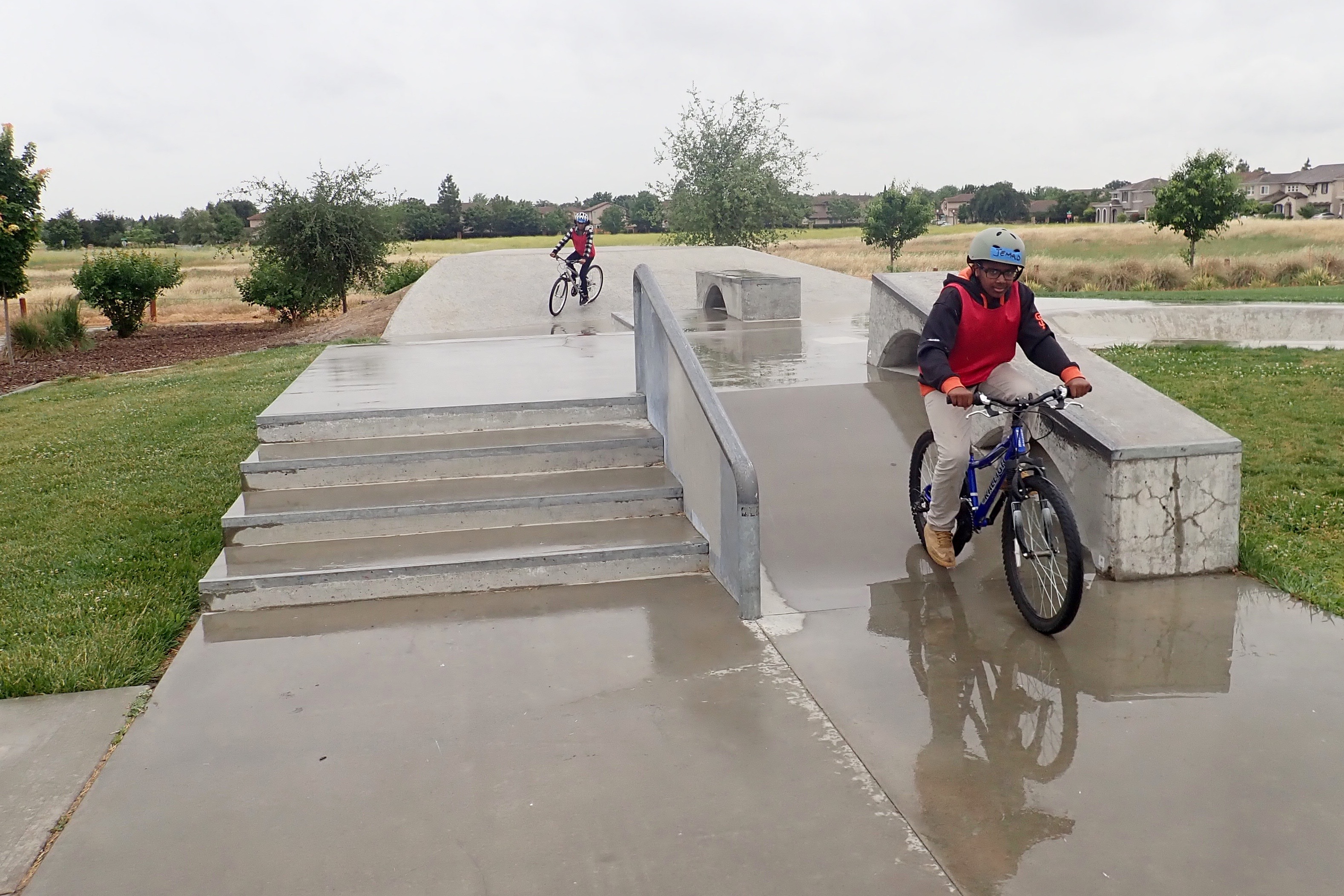 There were probably 15 kids each day. Some just needed riding time to refresh their skills. Others needed to learn from scratch. Our final success story on Friday: Vincent. We talked about a strong power pedal, eyes on the horizon. I ran alongside, barely holding him upright. After a few passes I told him, “I haven’t been holding you up. You’re actually riding on your own.” Vincent: “I am?” That was all he needed to know. Everyone who came to coaching is now riding a bike. LCIs Gina and Pierson were also there to coach and encourage.