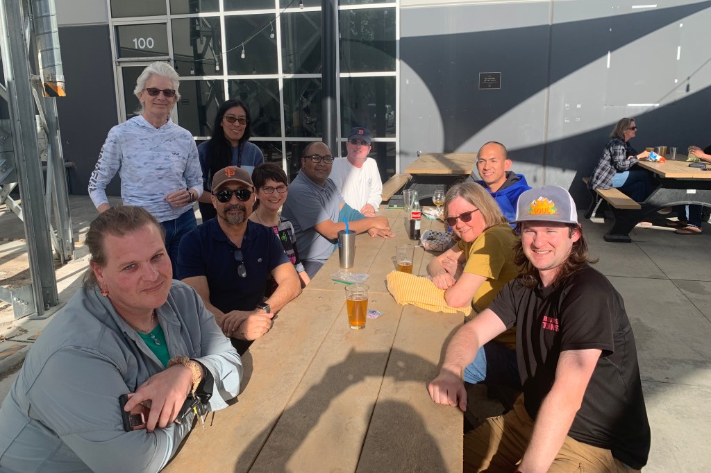 Kimberly, who lives in Dixon, drove to my house where we started our ride. Next stop, about a 1/2 mile away, Lennore’s garage. Then we rode to the Jibe office and met everyone else in the parking lot.