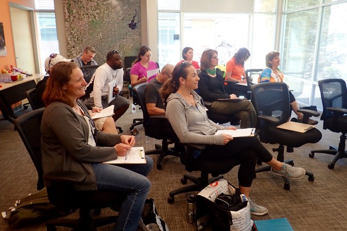 Veteran LCIs and about-to-become LCIs got together today for some ride leader training at the Jibe office. Mellissa Meng was the organizer.
