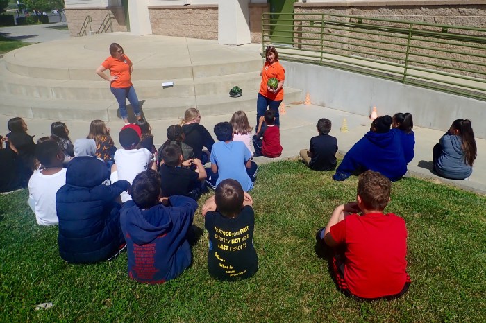 Christy, wearing an orange shirt in the center is also the Parent Champion at Regency Park. Every morning, students who walk to school check in with her to record the time they’ve spent walking or riding their bikes to school. They earn rewards for their efforts.
