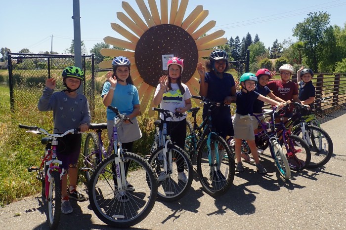 Back to last Wednesday. There was another bike club at Bridgeway Island Elementary in West Sacramento. Again, we didn’t know if anyone would show up. We got 6 kids at Stonegate. How many would show up here? Uhhh .. 25. And it was raining buckets! We met in a PE classroom and I winged it. Taking pictures? Maybe next time.