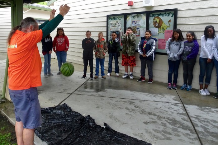 Sadly Jack refused to wear a helmet and he also crashed. His poor watermelon head cracked, juice dripped out, and everyone oohed and ahhed. Always wear your bike helmet!