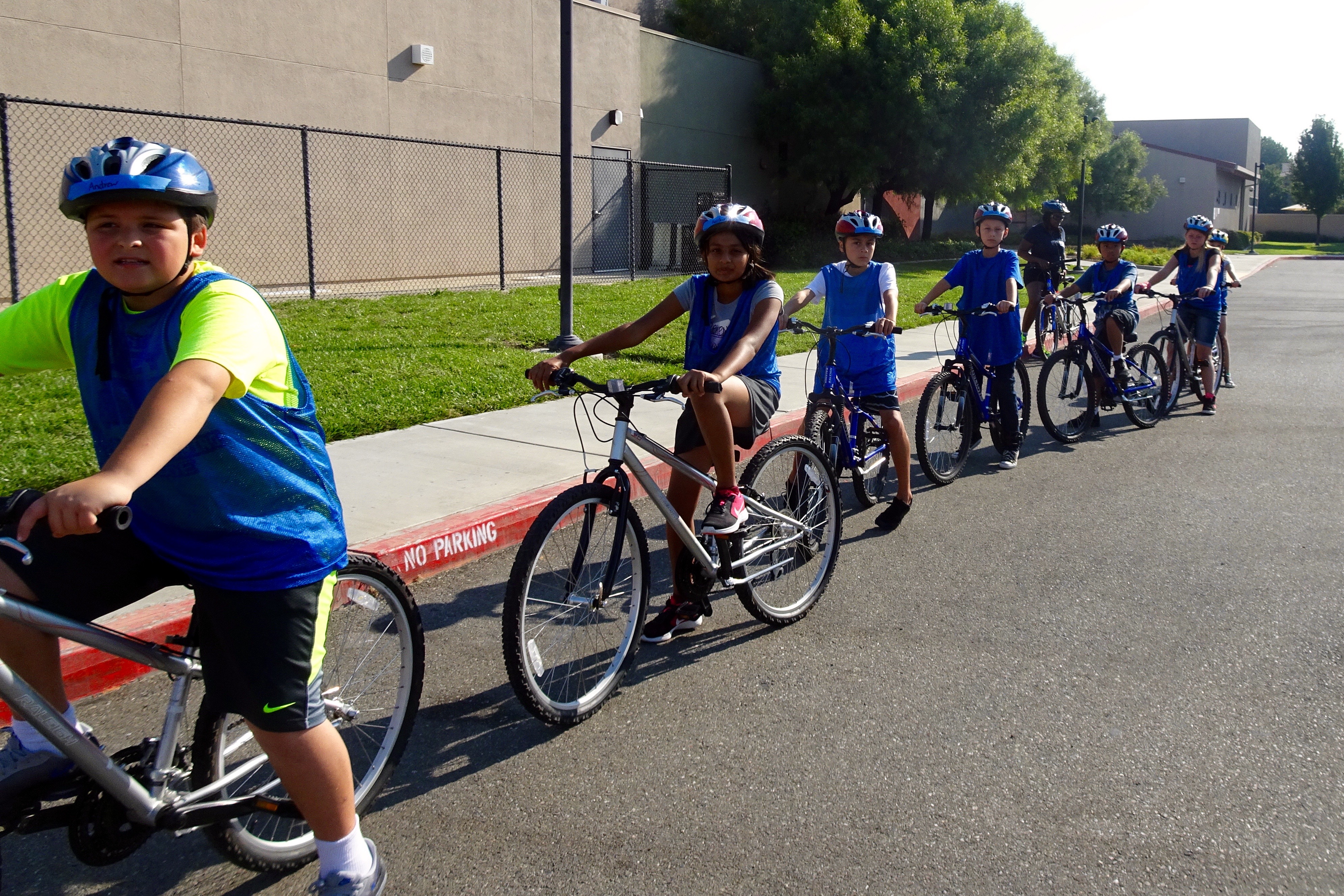 Hurray! Classroom instruction and blacktop drills have been completed. Students were divided into skill groups. I worked with those students who needed more practice riding on the bike trail with minimal on-street instruction. In this group, the three students to the right LEARNED how to ride a bike for the first time after coming to both after-school coaching sessions. The young man at the left made an excellent “sweep” rider and assistant coach.