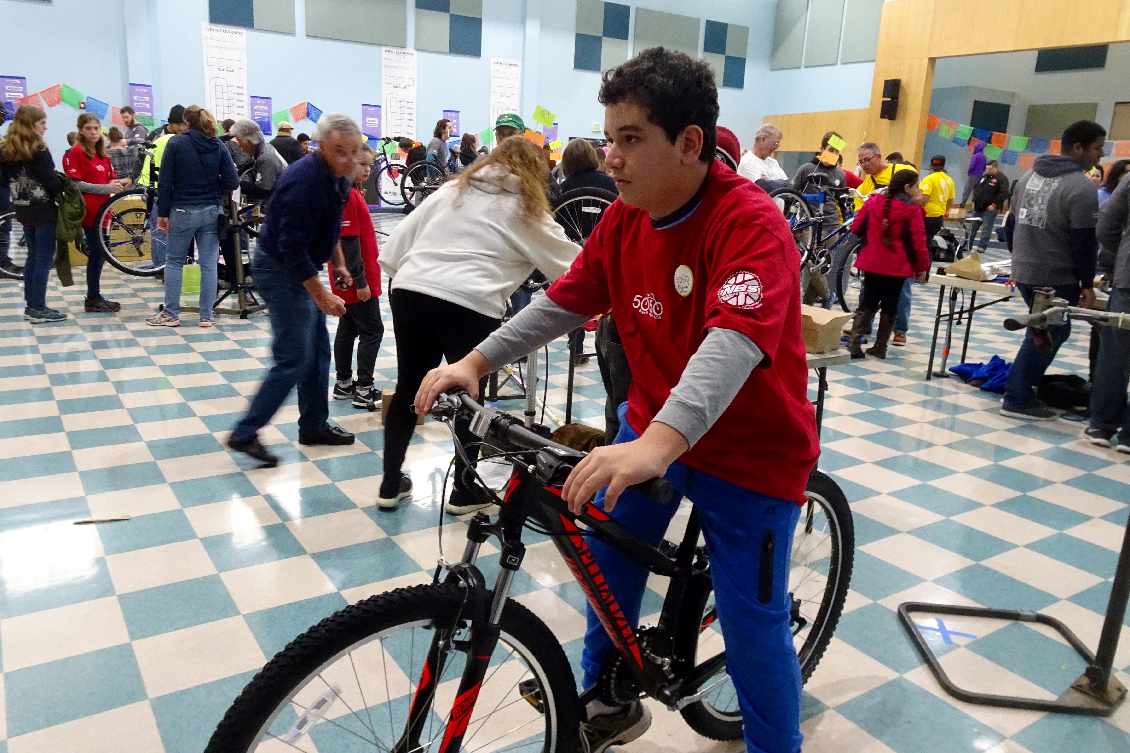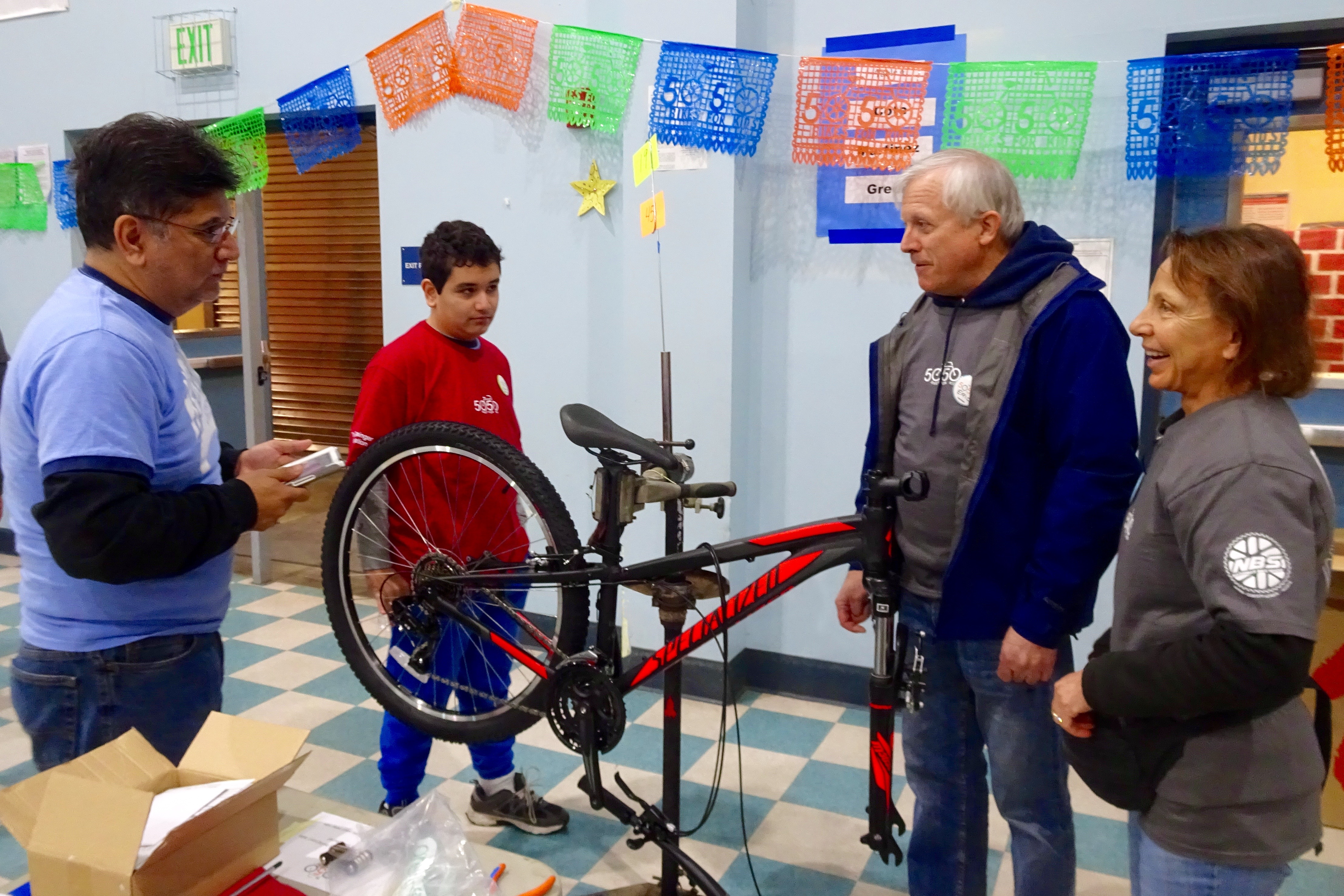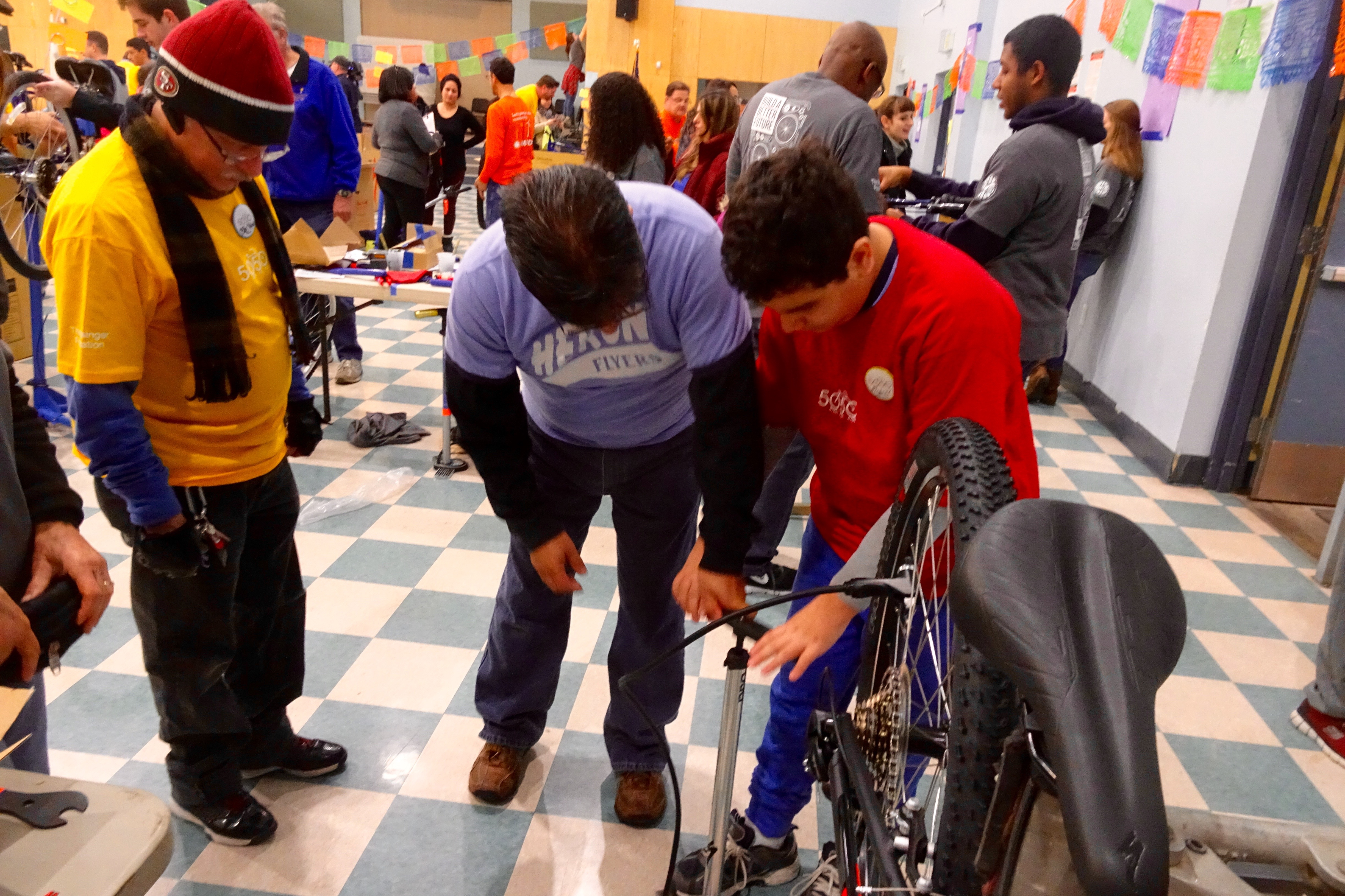 This year, I worked with Mary and Eric from Bike Hikers to build a bike with the student receiving it, Miguel Lopez. In the blue t-shirt was Miguel’s father, an invaluable member of our team since Miguel was a non-verbal special education student.