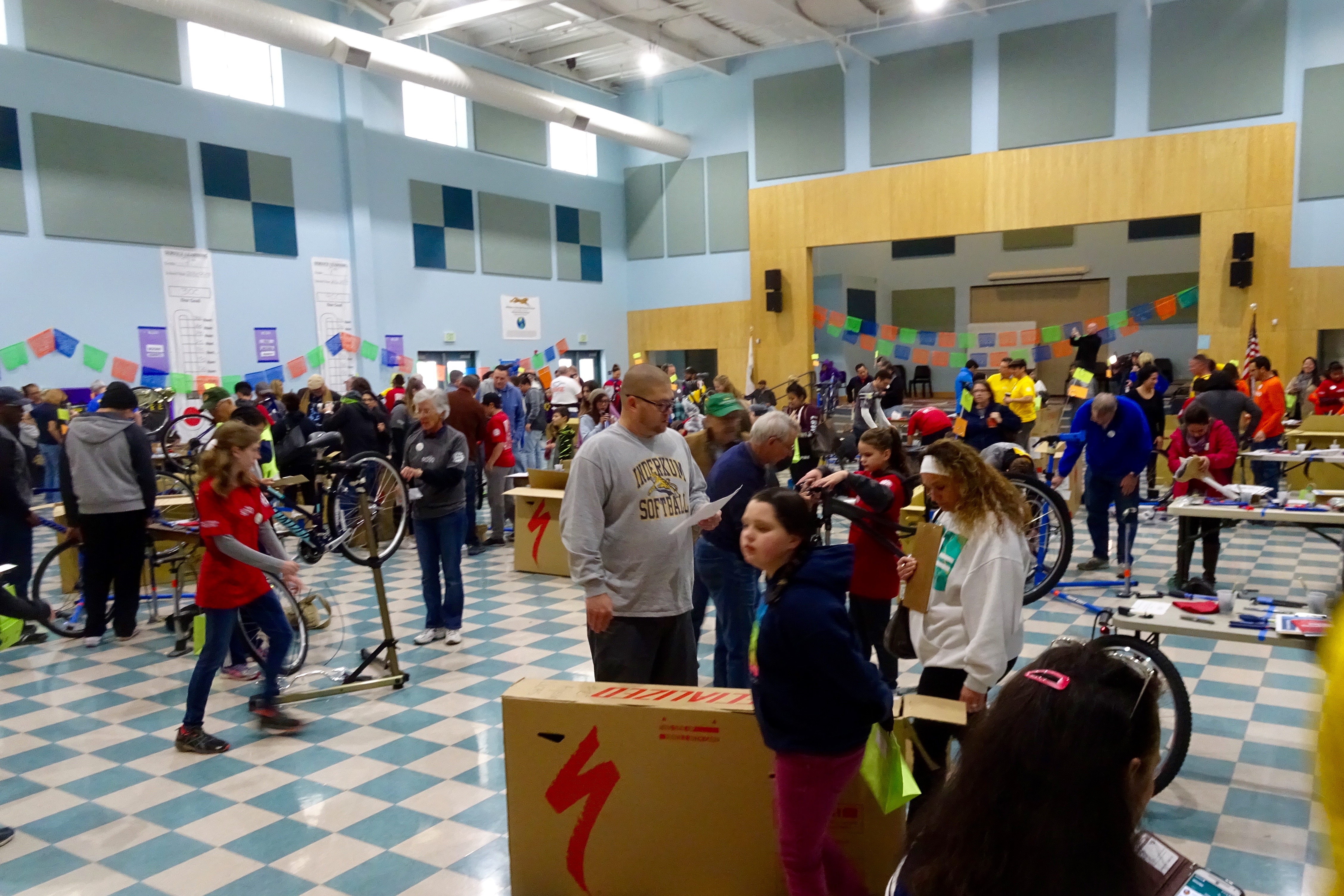 We were part of the morning group in the gym at Natomas Middle School where 25 students built bikes with their support teams.