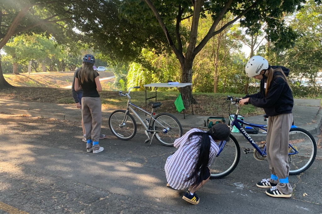 A cold Saturday morning. Barbara and I met at 8:30 at Miller Regional Park. Barbara explaining how to use the brakes: