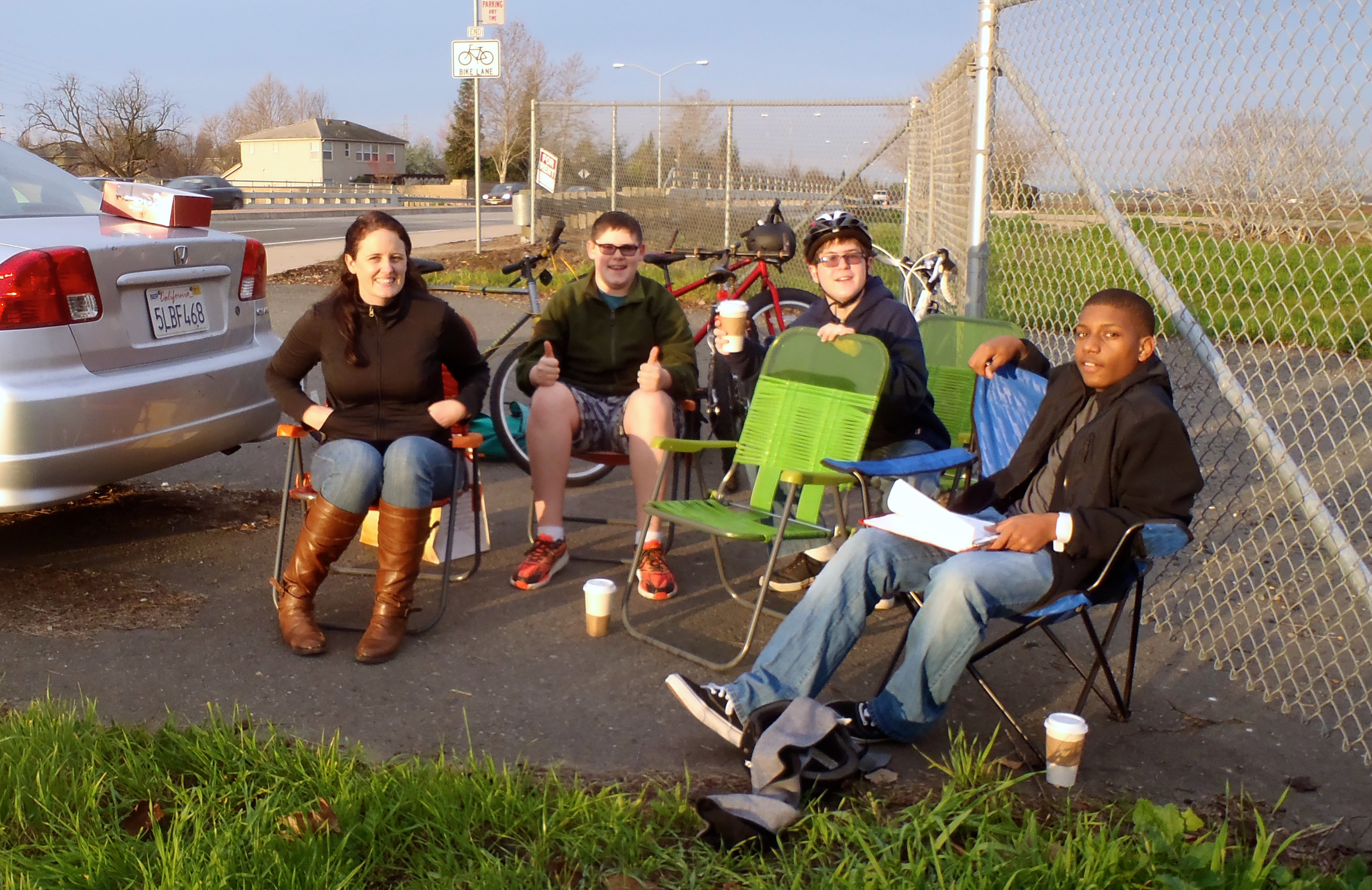 but an intrepid few stay after school and go for a quick fun bike ride. Along the way, we stopped for a bit to appreciate the recent improvement to the bike trail on the west side of I-5 just north of W El Camino Ave. L-R: Staff advisor Ms McManus, Xavier, Jack, Andrew.