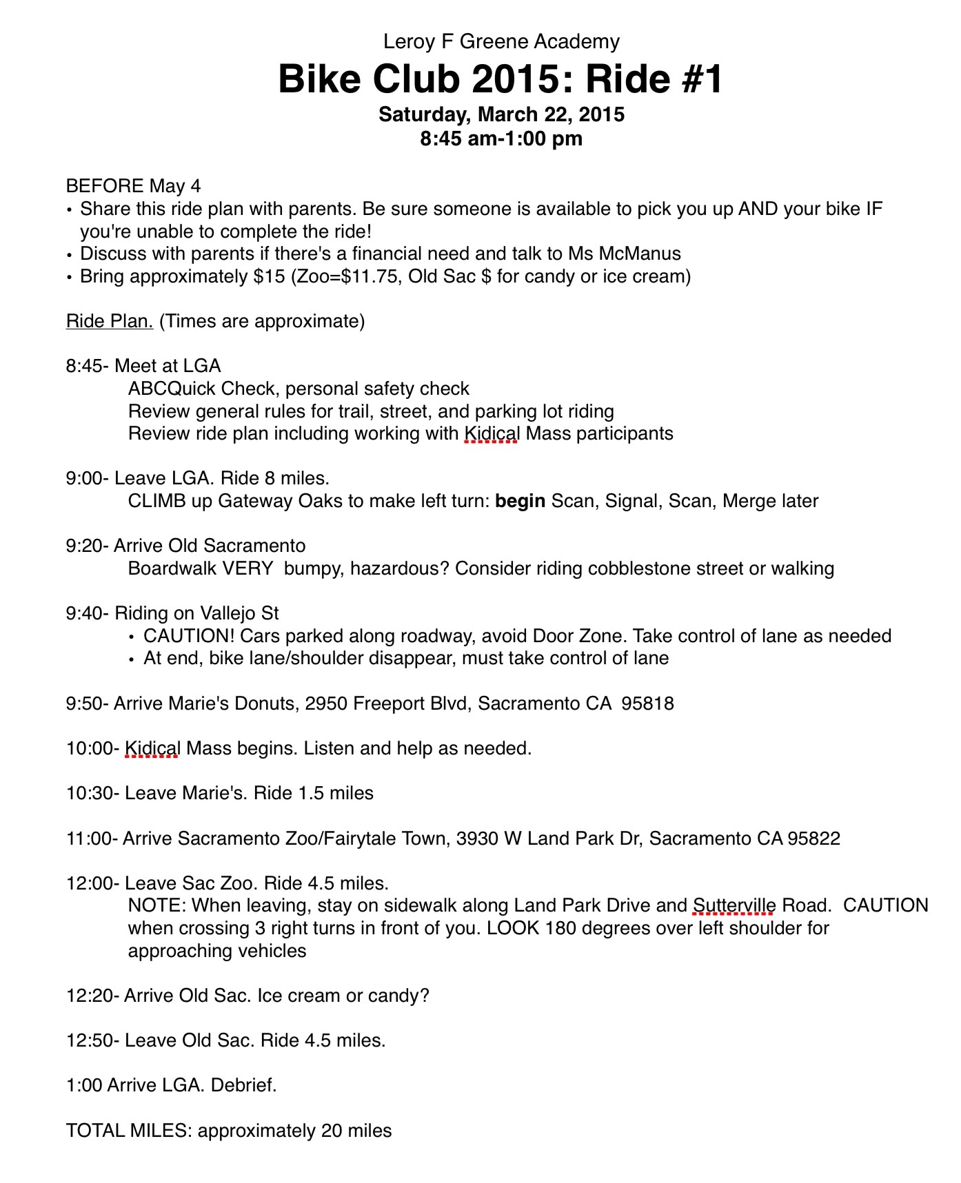 The next step is to create a ride plan to share with students, parents, and Megan, the staff advisor.
