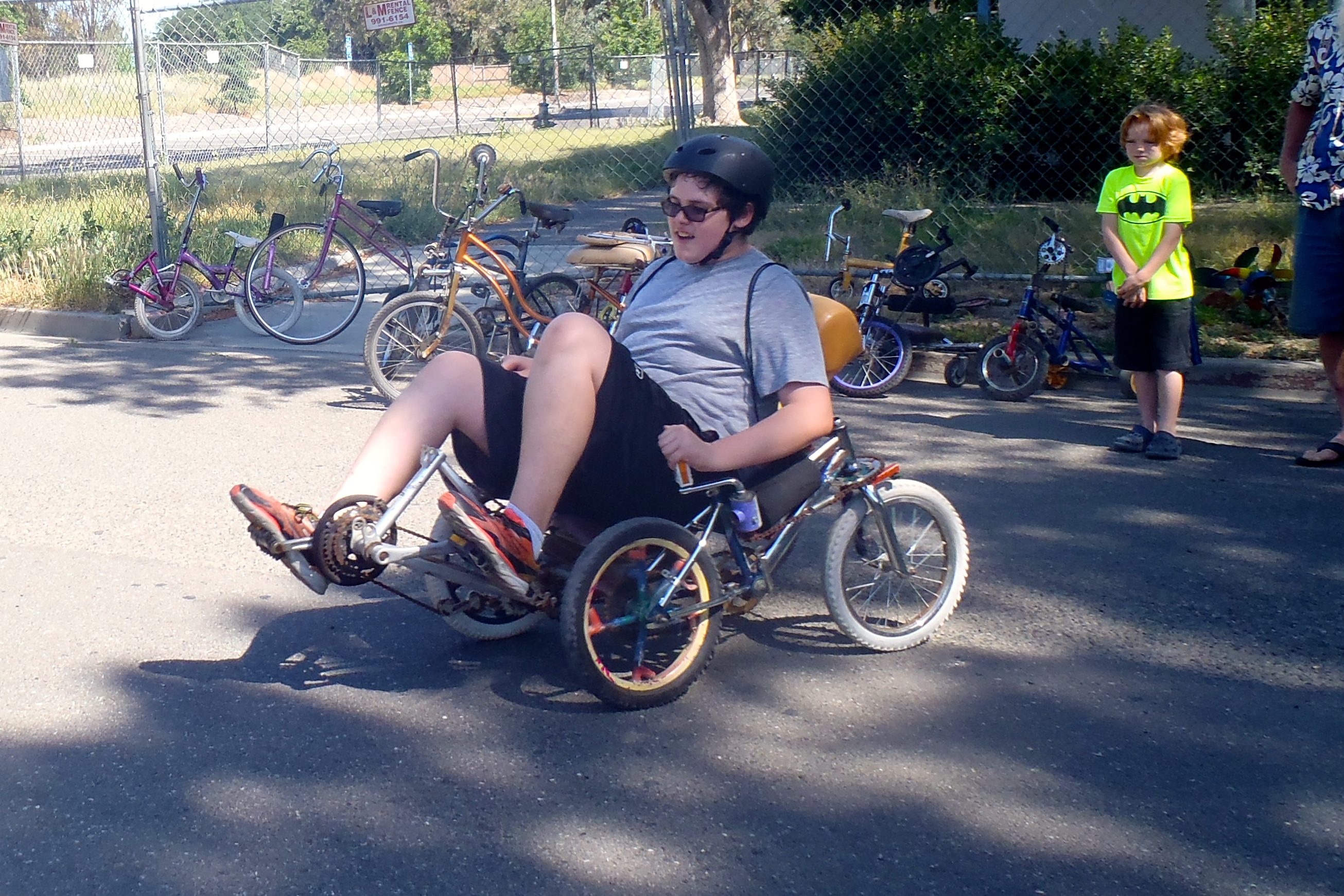 We met up with Elle Steele and Kidical Mass. They were having a group ride from Marie’s Donuts to William Land Park, about 2 miles away. The variety of child-carrying bicycles was amazing.