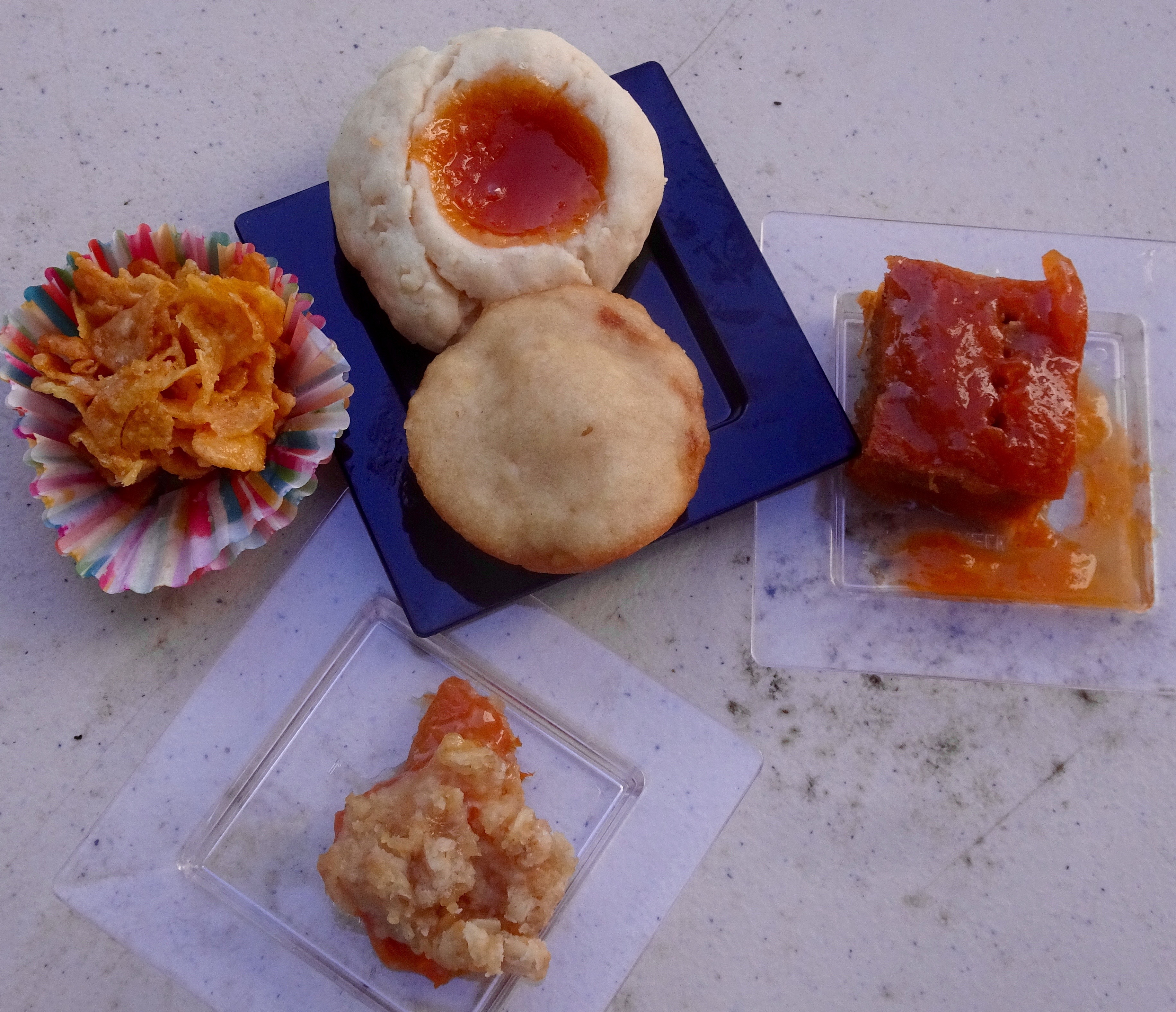 The Throwdown key ingredients were apricots (gathered from a tree on the DCRH property) and honey (donated by The Natomas Farm). The entries: in addition to my Honey Flakes and Apricot Breakfast Crisp, there were Apricot Thumbprint Cookies, Honey Apricot Cake, and Mini Honey Muffins.