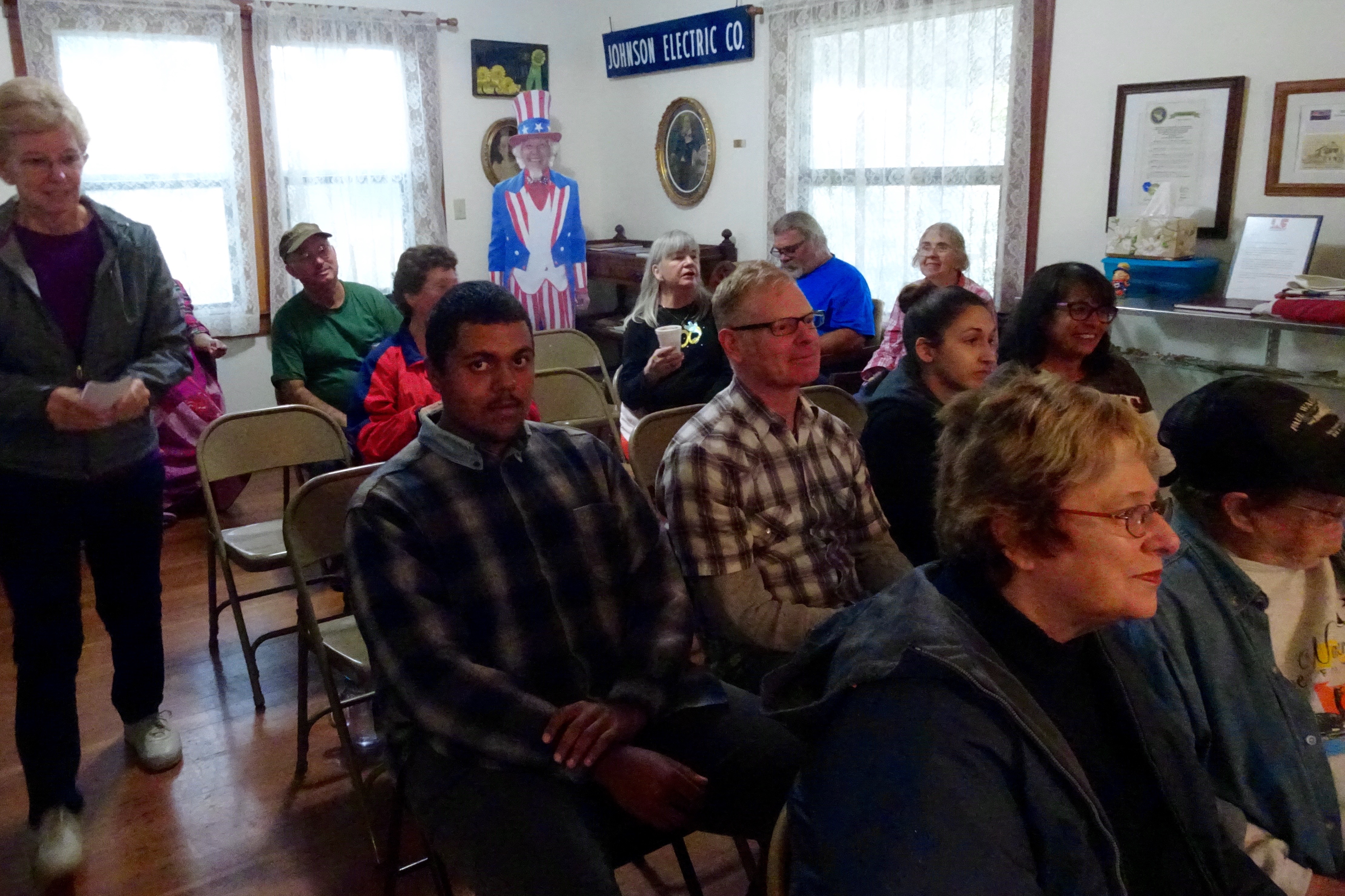 Because of rain, we moved inside the Dry Creek Ranch House for the meeting. A tad crowded but it all worked out.