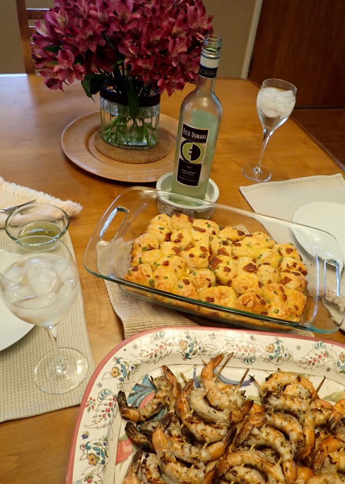 On Tuesday. Phyllis has been staying with me since January 12 – really just spending the night in the guest bedroom – she’s been visiting LOTS of friends and family. Today was reserved for Thursday at Merrilyn’s. Bacon cheese pull-aparts and Garlic buttered grilled shrimp:
