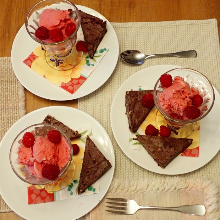 Dessert! Homemade raspberry sherbet and brownies:
