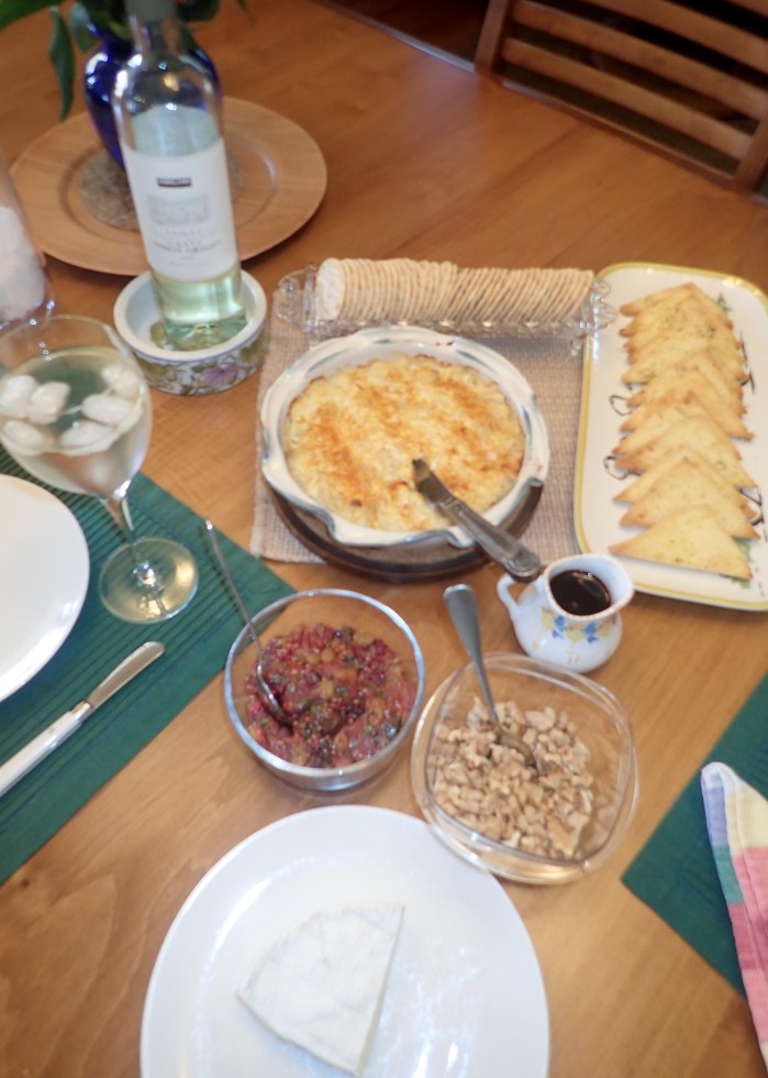 I offered to cancel today’s get together because standing up and making an appetizer seemed like too difficult a task. But Merrilyn said to come anyway – hurray! And I did bring something (the Ruffles, not the fruit) to go with Merrilyn’s Crostini with mushrooms, beef and brie.