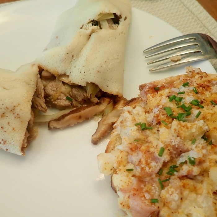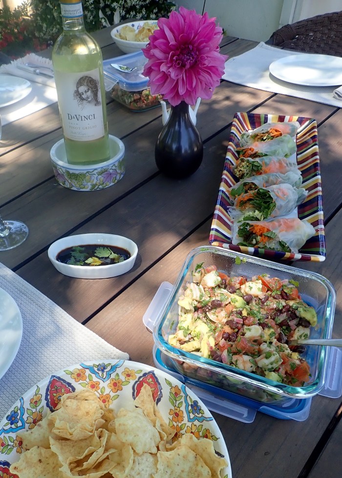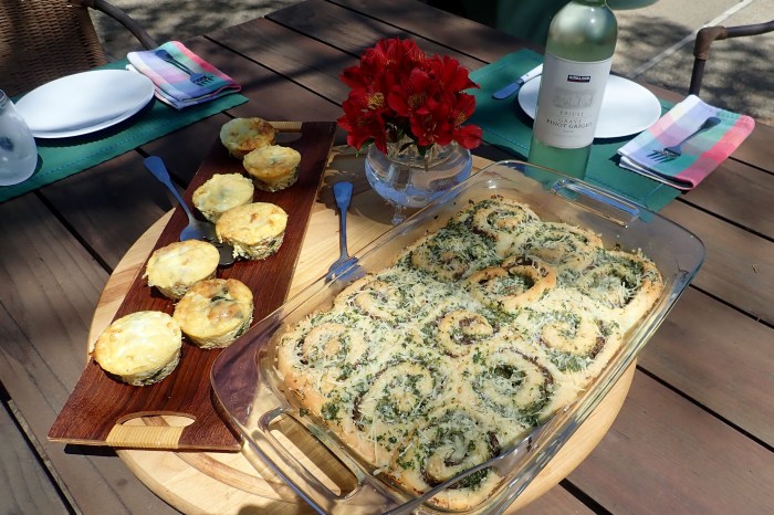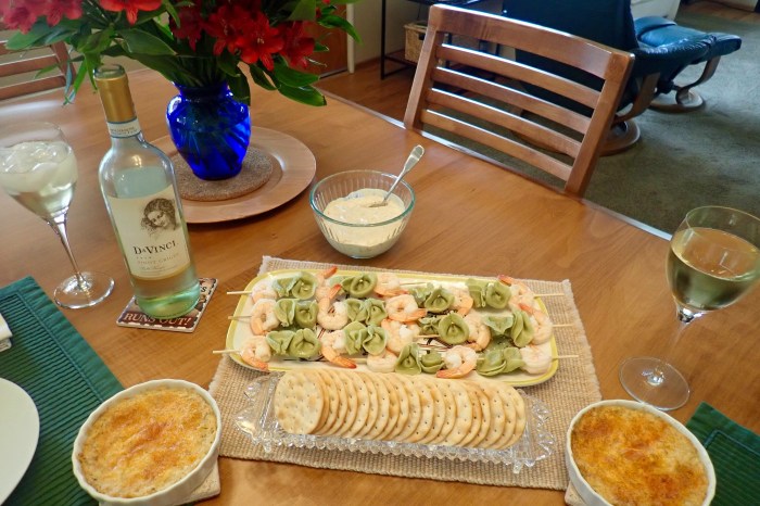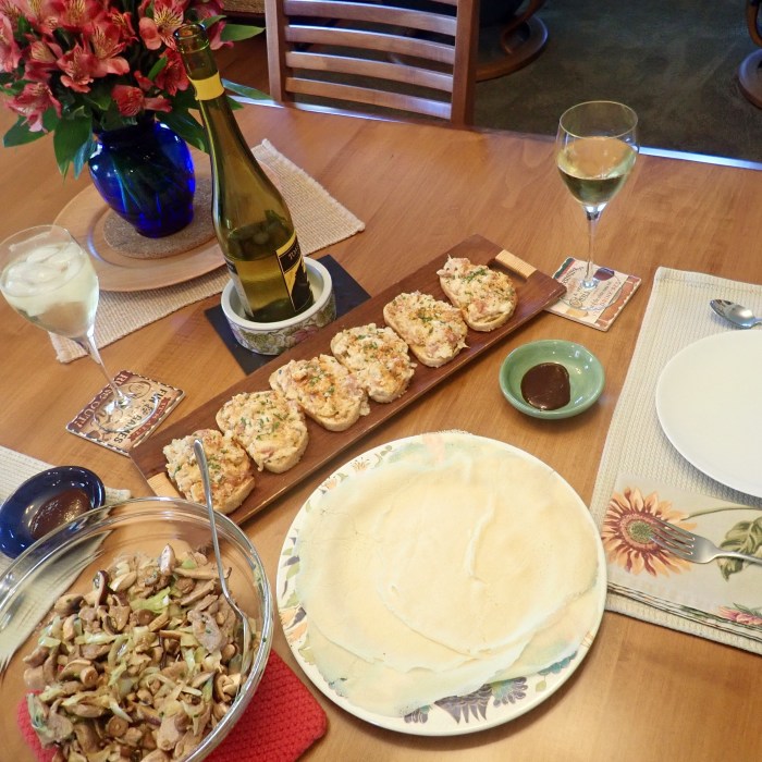 Margaritas, champagne, Leek tart, French bread pizza with sausage, clams and mushrooms …