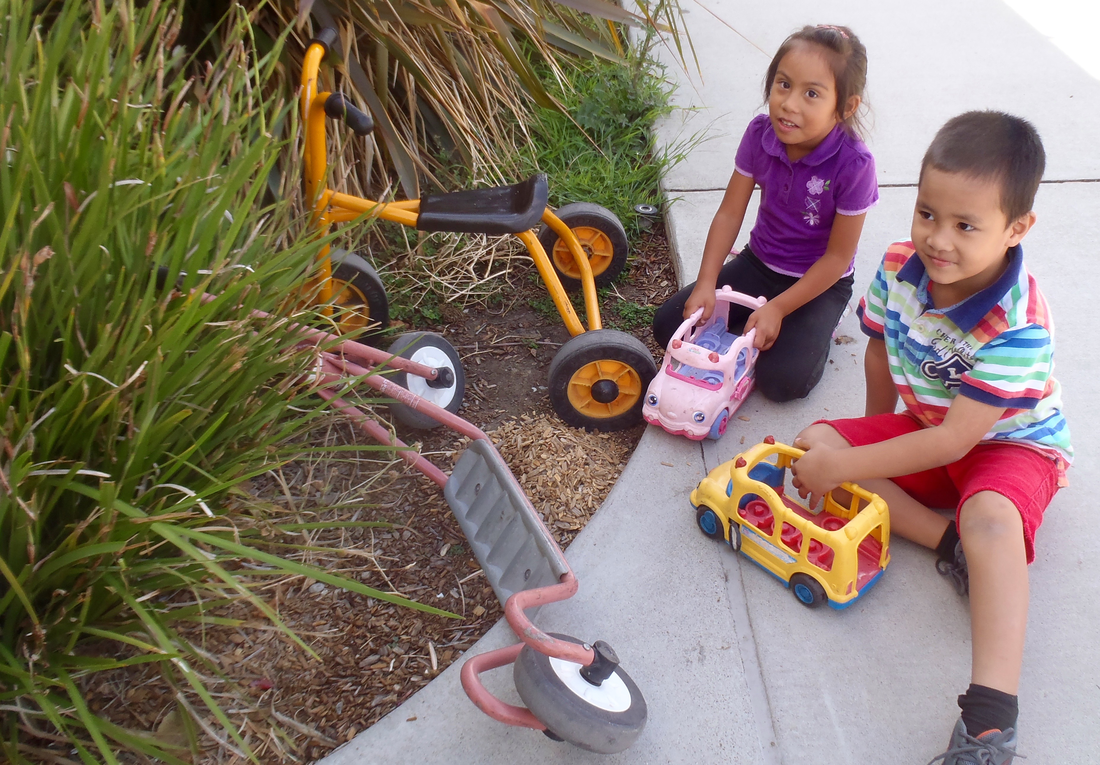 I asked these students what they were playing. “We’re hunting for tigers and giraffes.” I wished them good luck, but they didn’t need it. “See, that’s the tiger (orange tricycle) and that’s the giraffe (red scooter).” Well, of course.